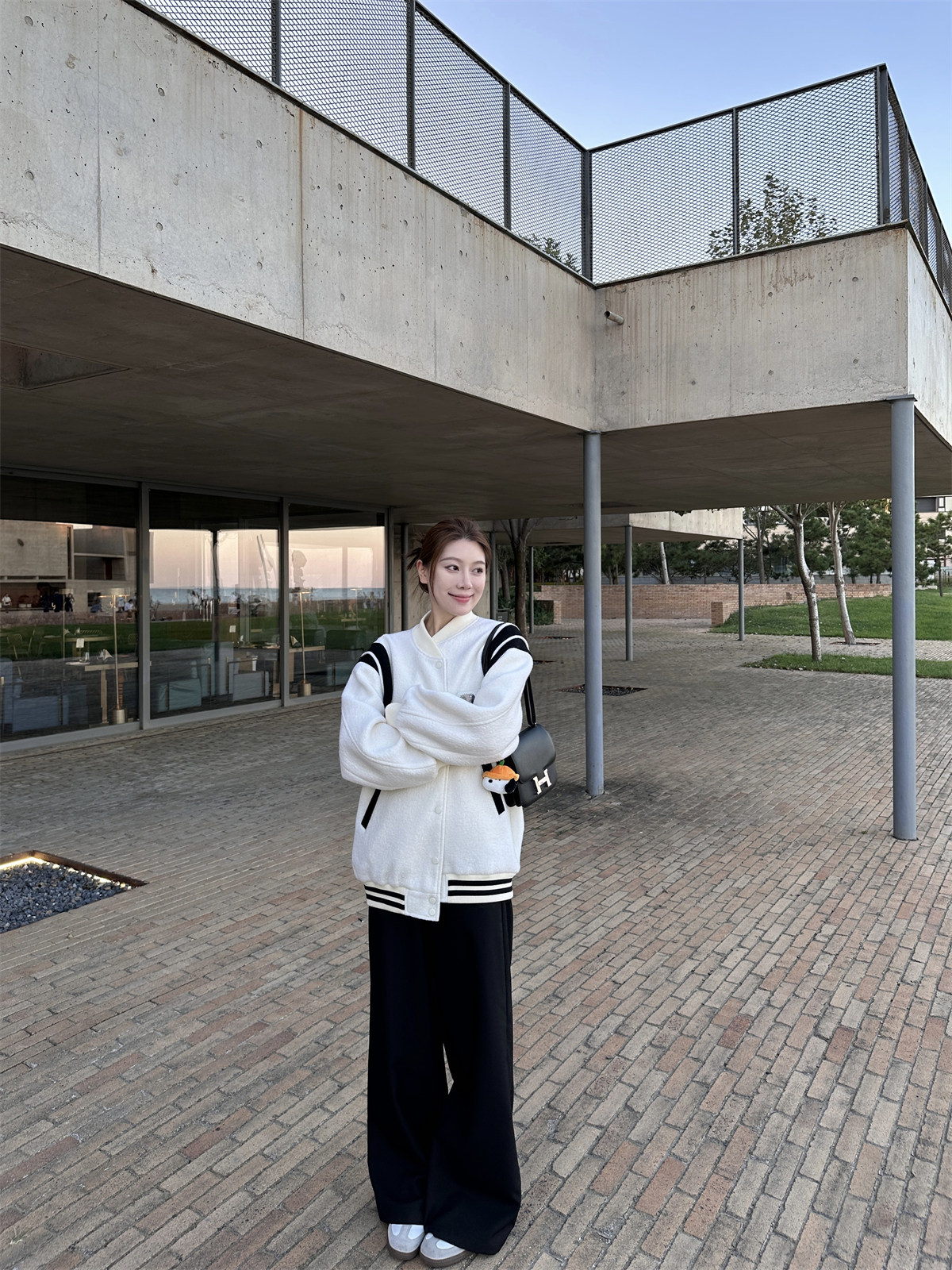 直筒寬松褲型 下腳的結構設計帶有微喇叭的視覺效果