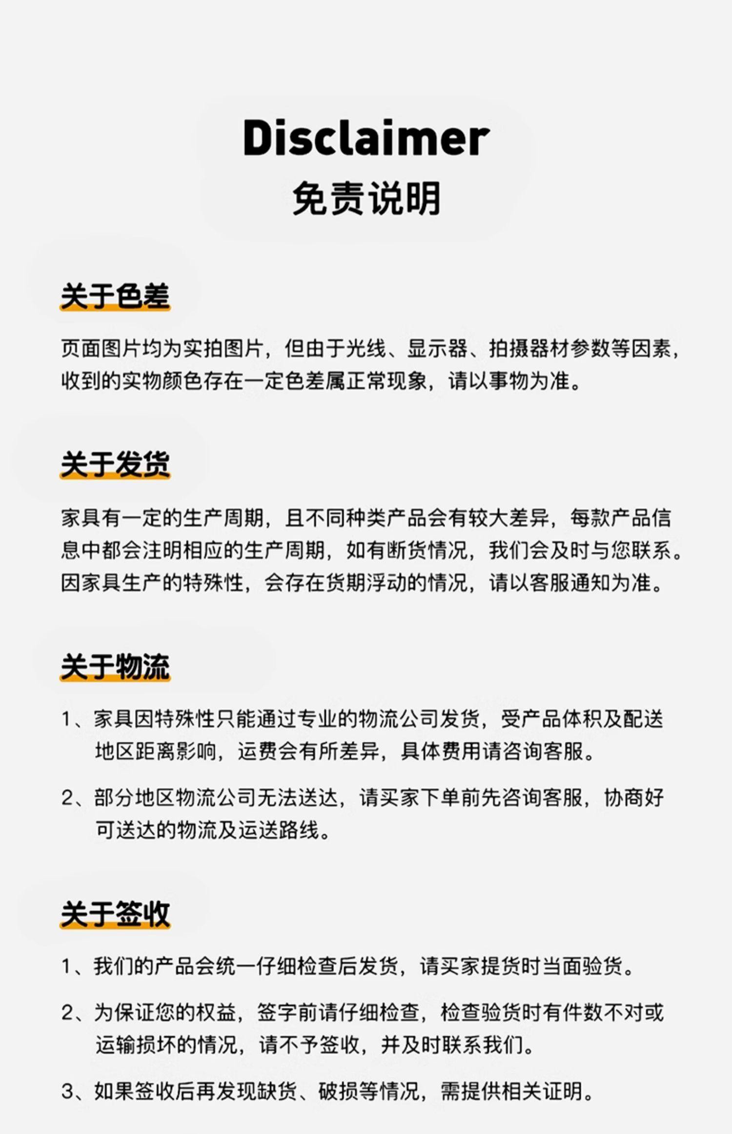 海關物流僅提供至指定地址1樓的配送服務,如要求配送至2樓(含)以上樓層,請提前與客服預約並支付額外費用。 - 家具類商品須知