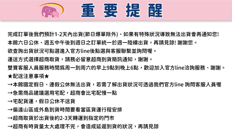 【宅配運費不含貨運認定的偏遠地區及困難送貨點跟醫院安養院以及非台灣本島區域或他國,運費請聯繫客服人員另外計算】