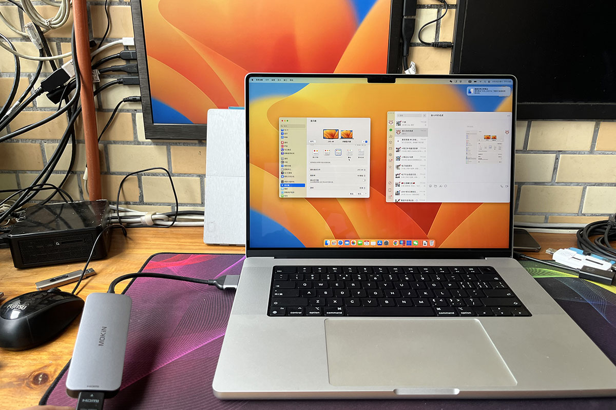 關于需要外接2個顯示器的朋友,因為我目前已經沒有老款的Mac電腦了,所以無法測試,官方給出的結果是可以支持到2個HDMI顯示器,看官方圖片也是擴展模式,但是我對此保持懷疑態度,因為蘋果外接多顯示器是要走菊花連模式,除非是這個內部集成了菊花連模式,所以在這里我無法告知大家是否支持的結論。