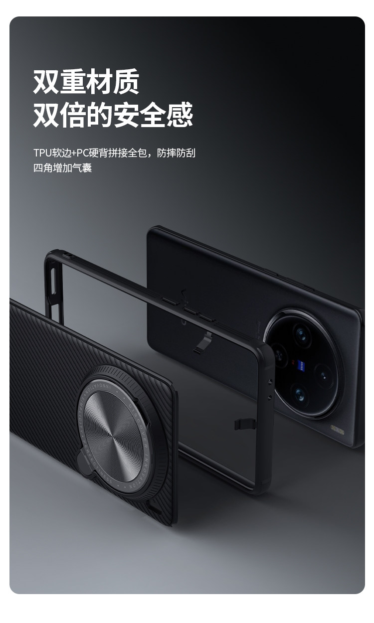 vivo X200 Pro 辰夜黑(黑色)因后蓋為玻纖材質,該材質在使用磁吸配件(磁吸無線充電器等)后手機背板可能會出現印記,該情況因手機自身材質原因無法絕對避免。