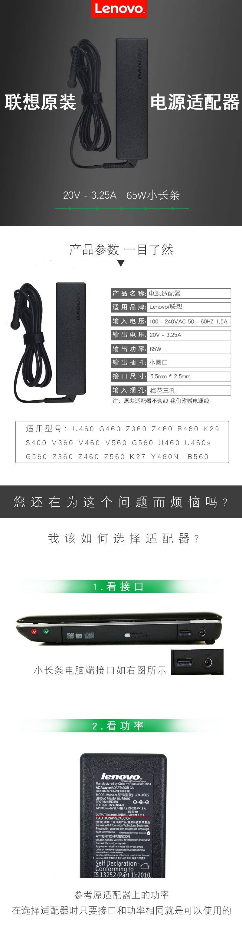 (1)關于電源線:本電源是聯想服務站直接拿貨,新款電源正常時不含電源線,只有適配器,在聯想售后賣280元 也是不包含電源線,所以你購買本店原裝電源適配器送你原裝電源線一條,所以請不要因電源線問題來說事!