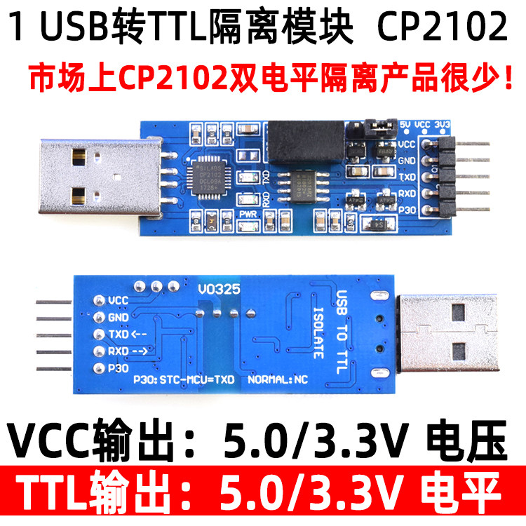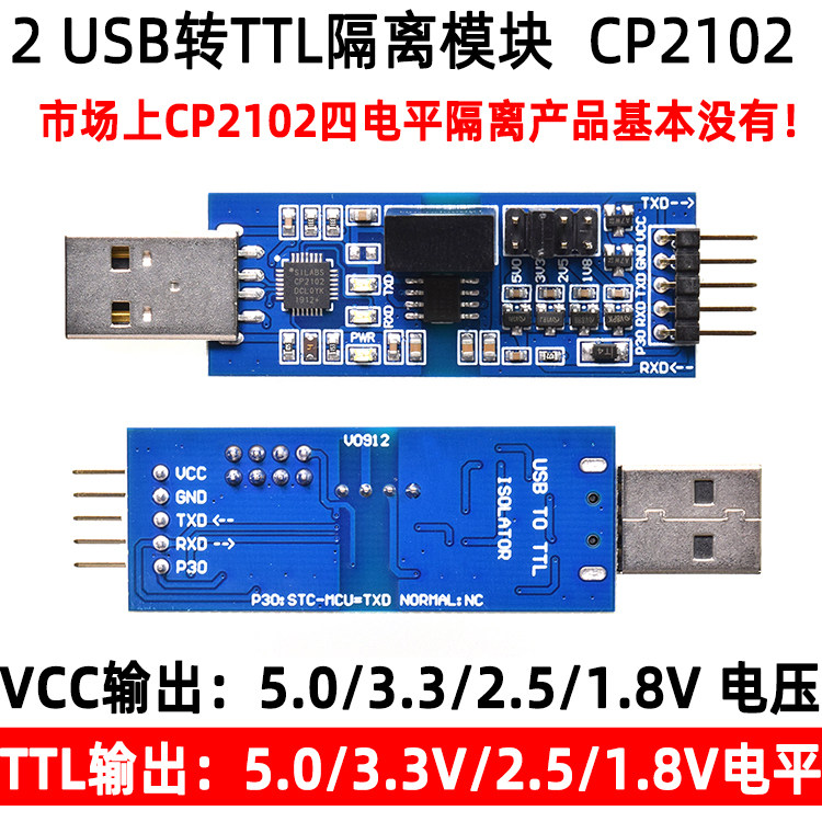 1.采用ADI公司iCoupler® 技術的雙通道數字隔離器:ADUM3201ARZ。這種隔離器件將高速CMOS與單芯片變壓器技術融為一體,具有優于光耦合器等替代器件的出色性能特征。iCoupler器件不用LED和光電二極管,因而不存在一般與光耦合器相關的設計困難。簡單的iCoupler 數字接口和穩定的性能特征,可消除光耦合器通常具有的電流傳輸比不確定、非線性傳遞函數以及溫度和使用壽命影響等問題。這些iCoupler 產品不需要外部驅動器和其它分立器件。此外,在信號數據速率相當的情況下,iCoupler 器件的功耗只有光耦合器的1/10至1/6。2.采用原裝CP2102,高速穩定,極限速度1Mbps(921600bps)3.采用金升陽隔離電壓:1500VDC的電源隔離模塊,具有持續短路保護功能4.電源、發送、接收LED顯示 發貨清單:1、CP2102隔離型模塊 X 12、4P-30cm母對母杜邦線 X 1