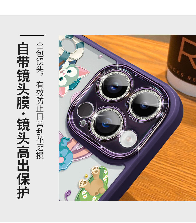 蘋果15pro閃粉鏡頭殼-動物堆堆樂(A