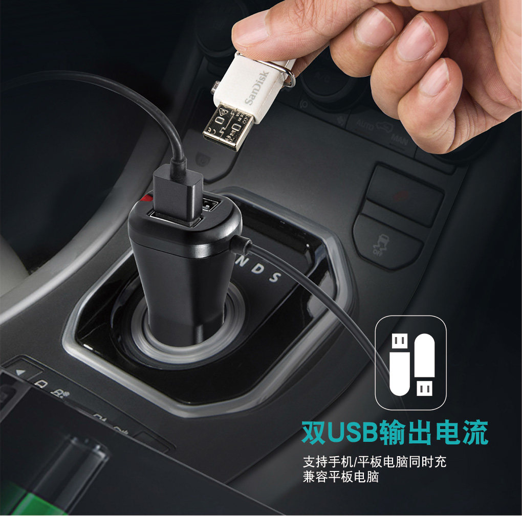 2:車載充電:可以通過USB接口,給手機/iPad智能充電。