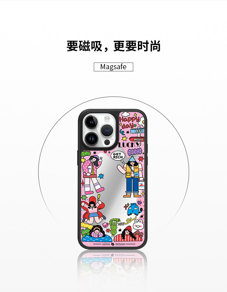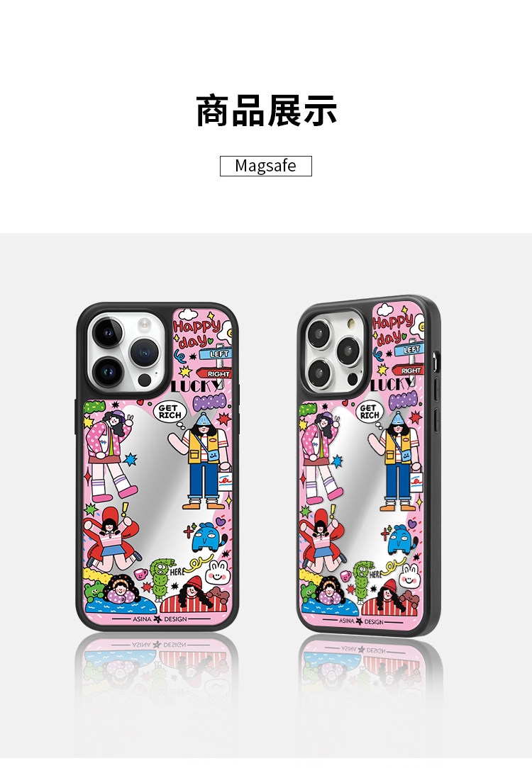蘋果15pro磨砂磁吸鏡面殼-彩色扁平女孩(y)