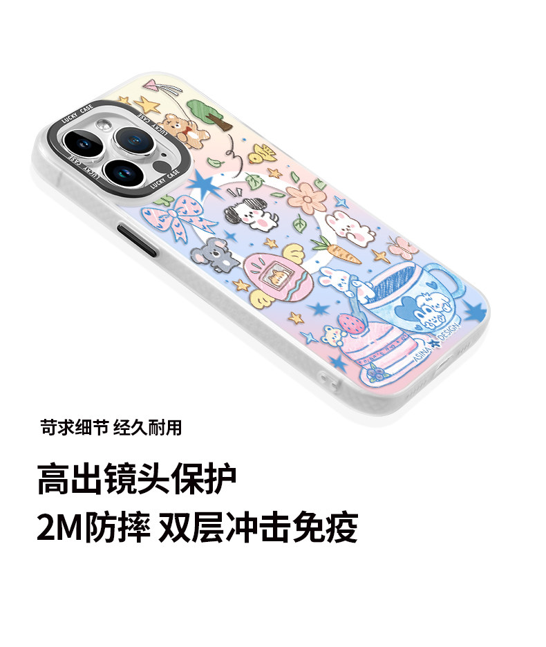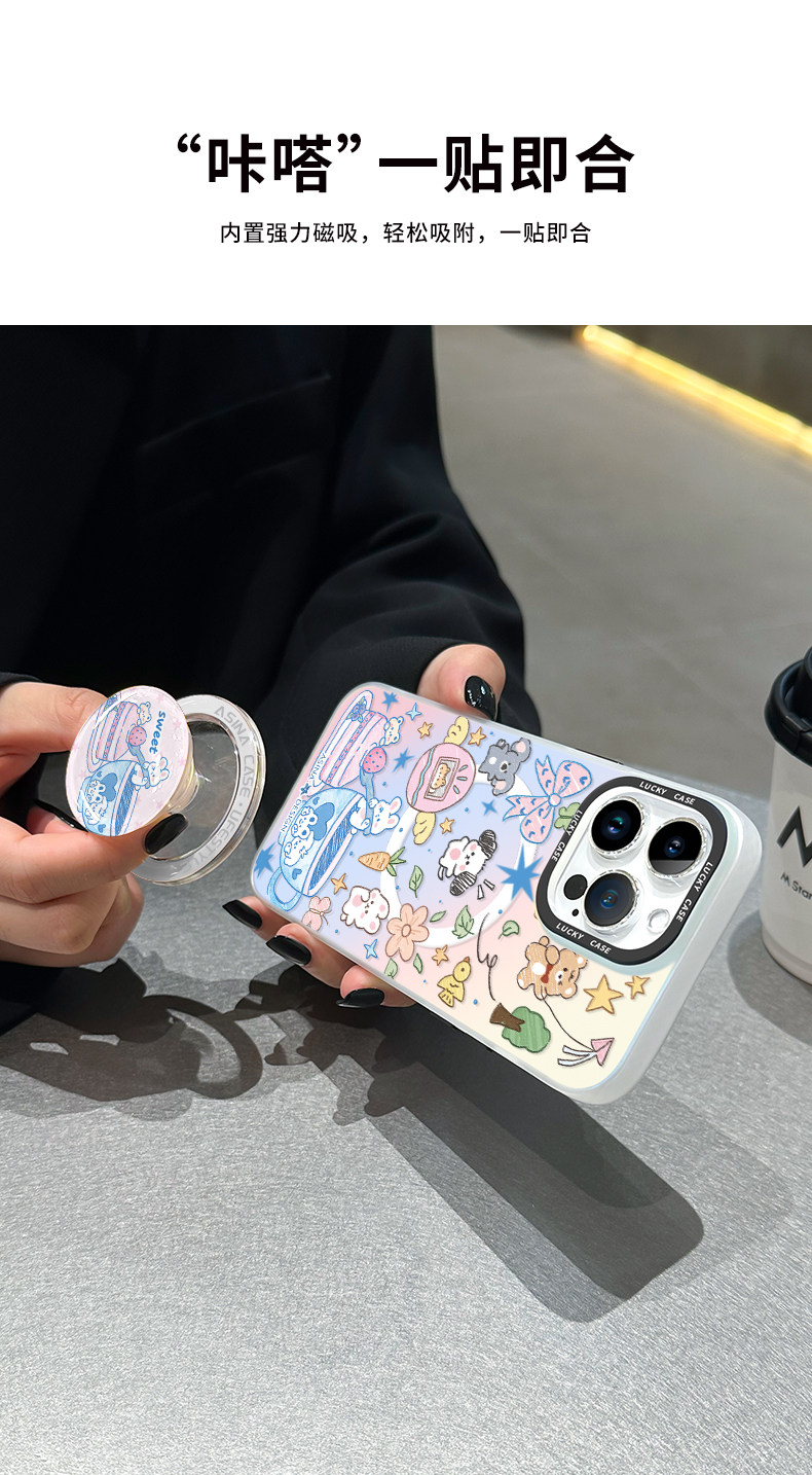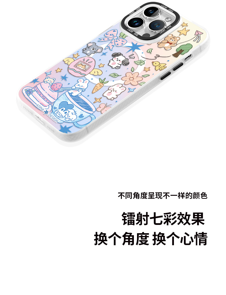 蘋果15pro鐳射磁吸殼動物涂鴉線條