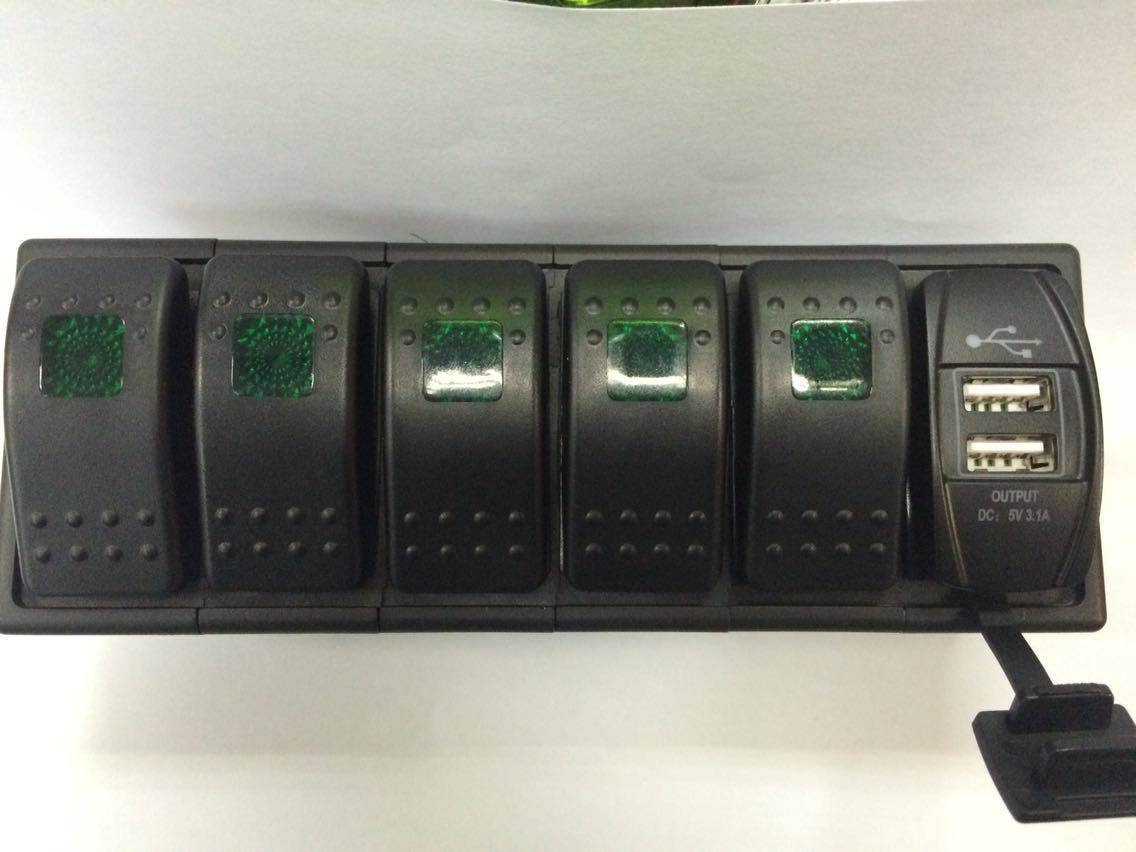 5路開關帶USB點煙器充電器,顏色有紅藍綠