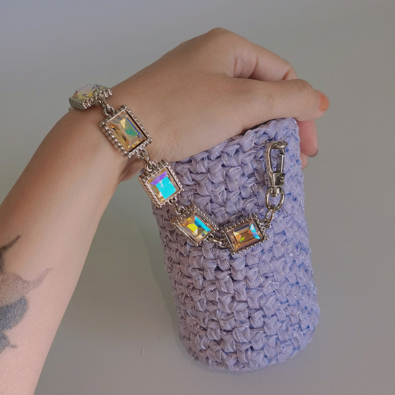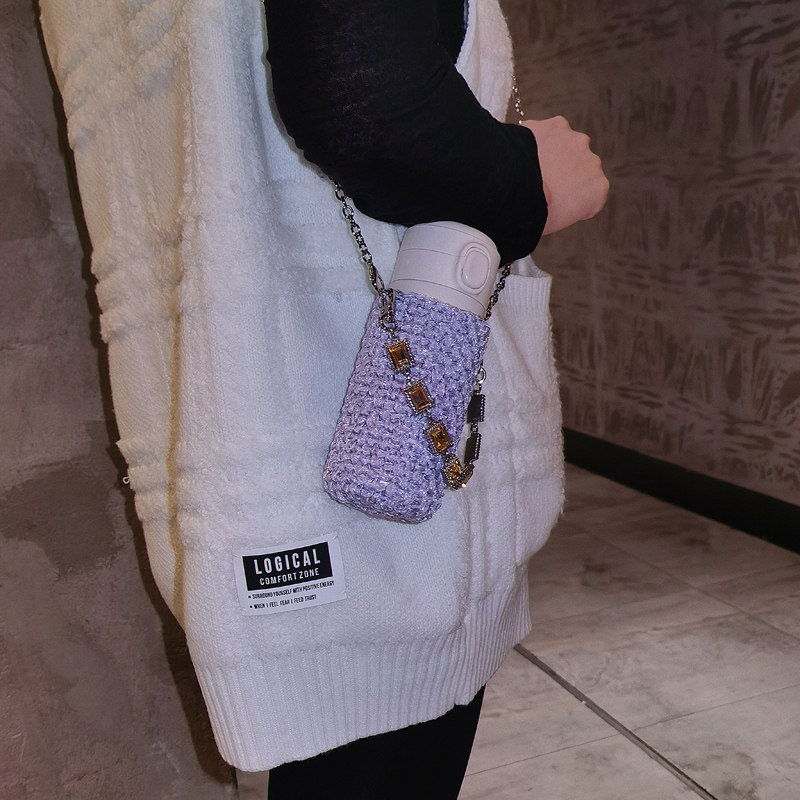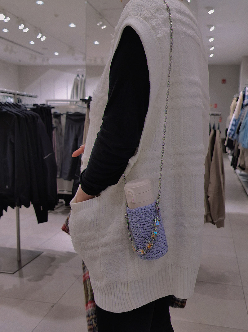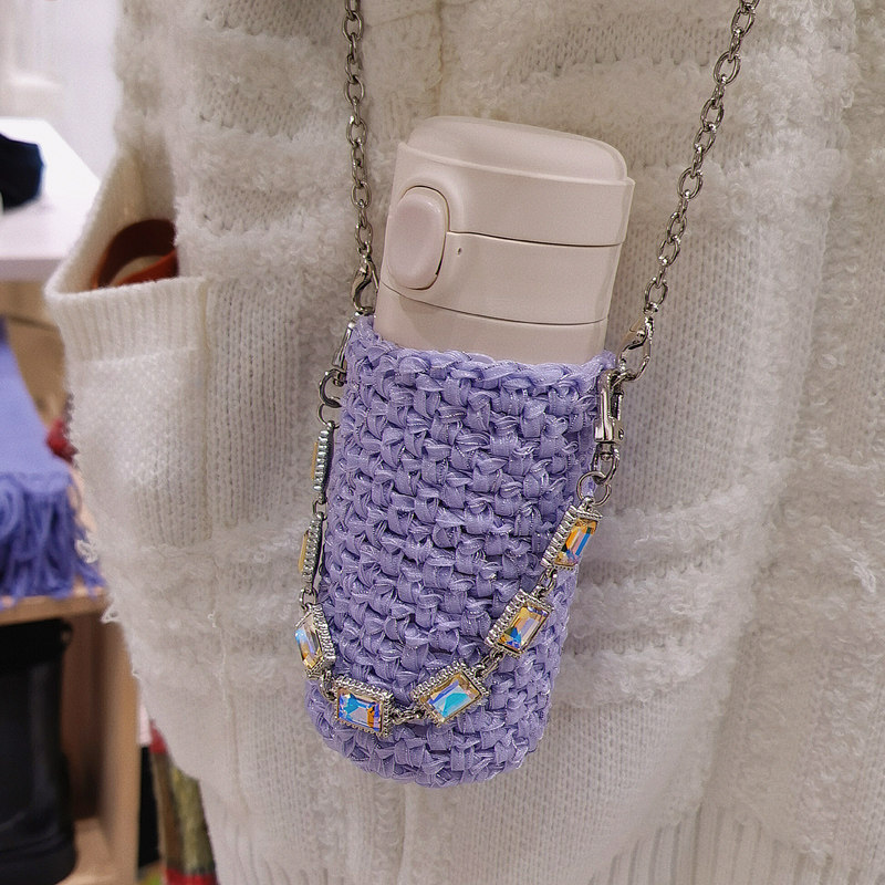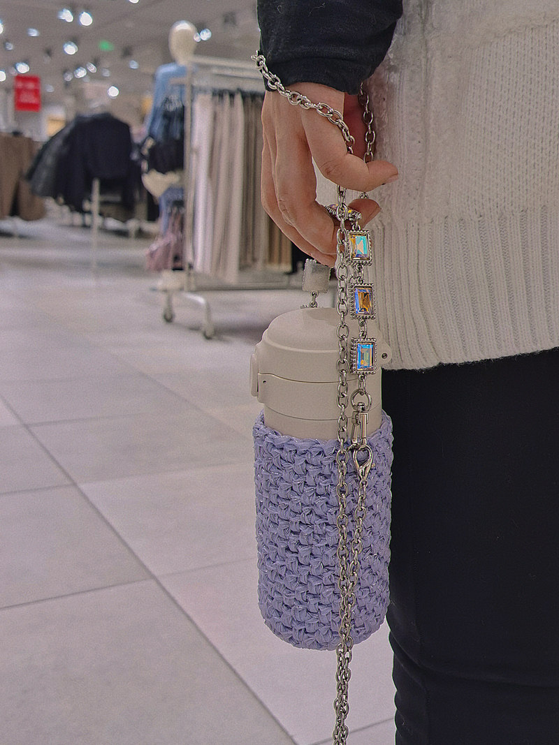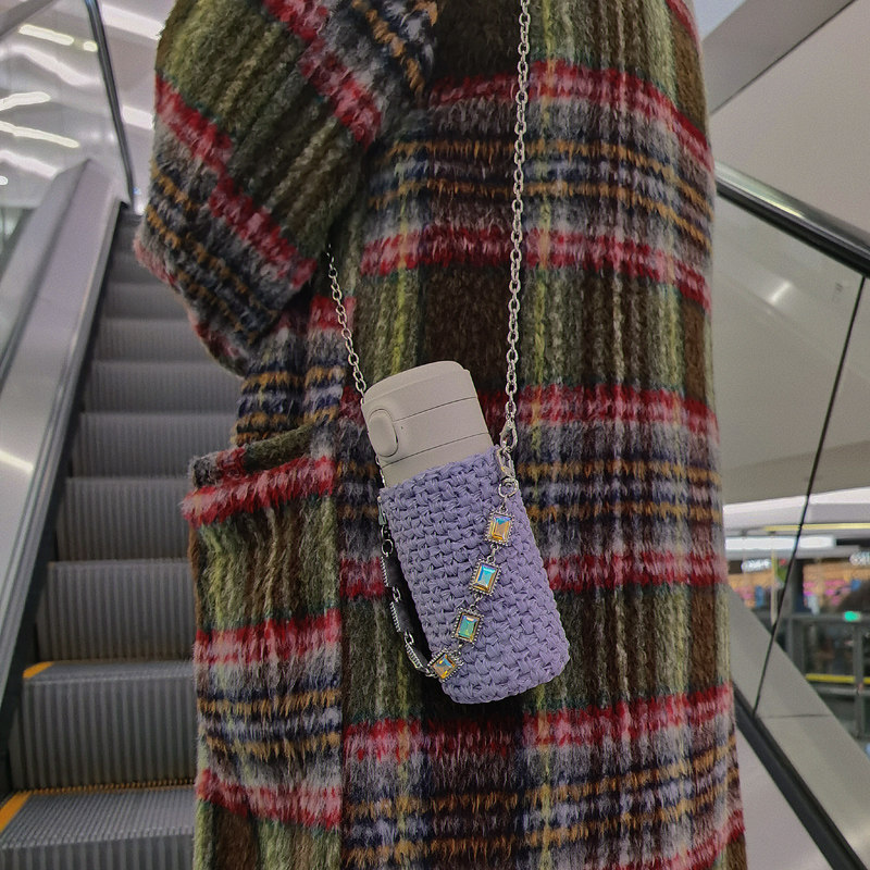 尺寸:底部直徑7.5cm以內都可使用,根據杯子底部直徑的粗細不同,負重拉伸情況下200ml最高約為11cm,350ml約為14cm,500ml約為17cm。手提鏈長約27cm,斜跨長鏈長約104cm 。