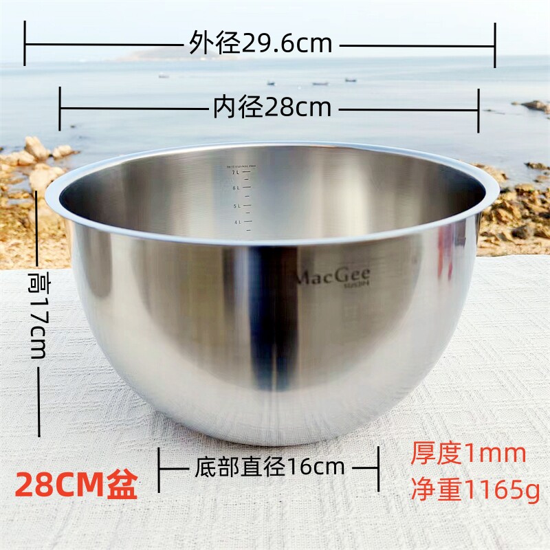 特大號內徑28CM,外徑29.6CM,底部直徑16CM,高17CM,凈重1165g,刻度容量7升,盛滿容量8升左右;