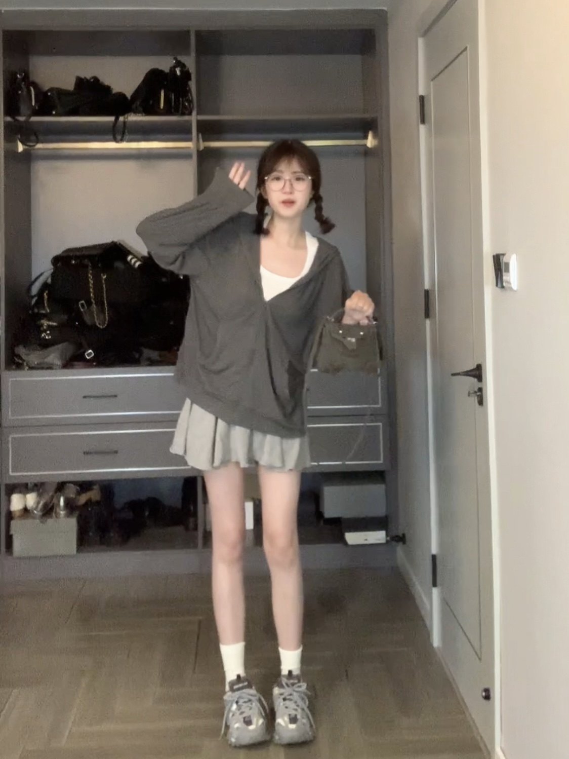 炭灰色短款有套袖