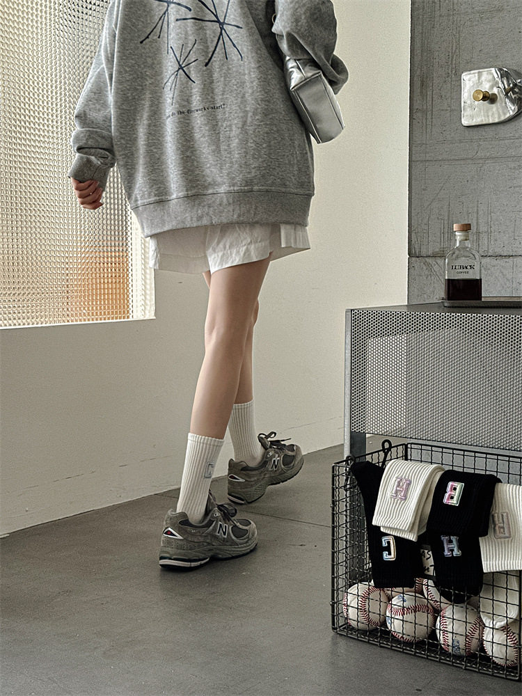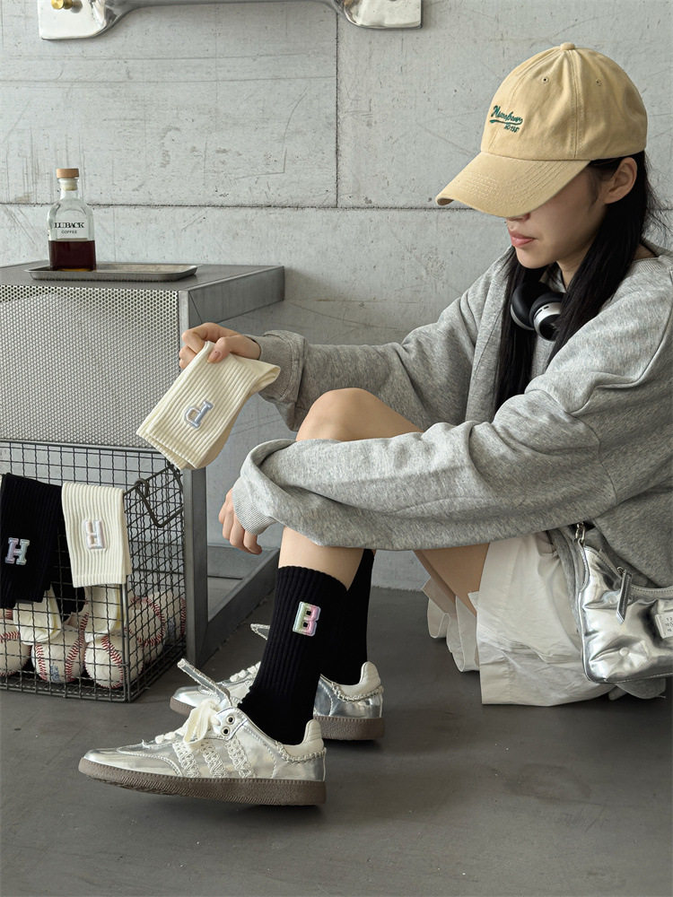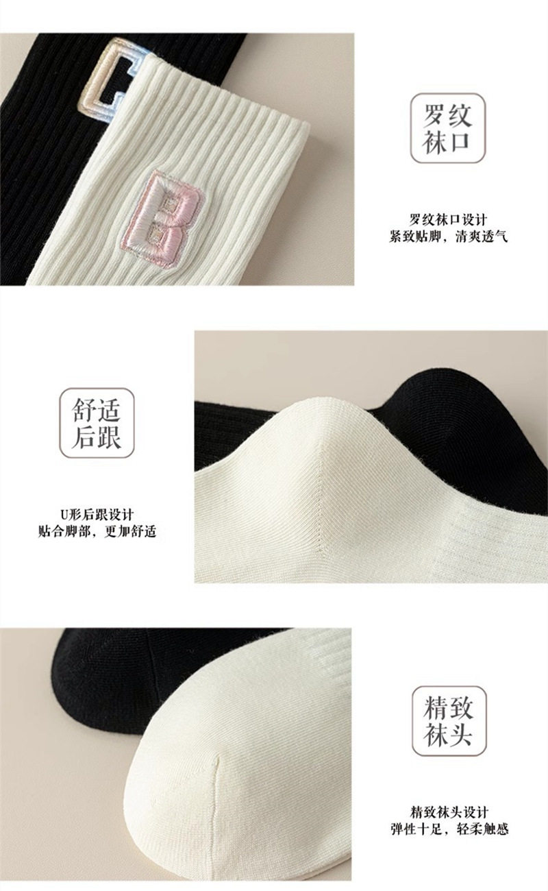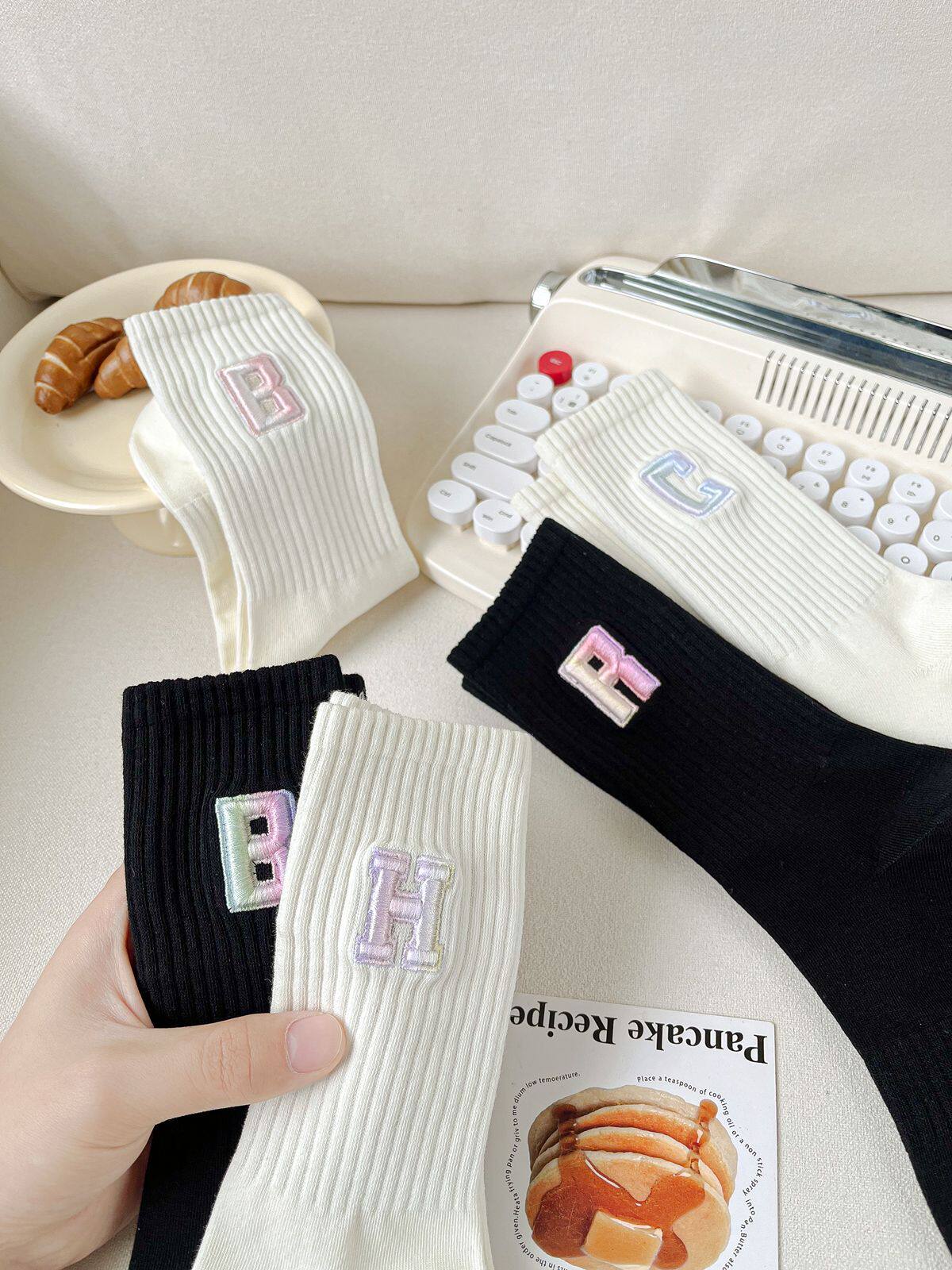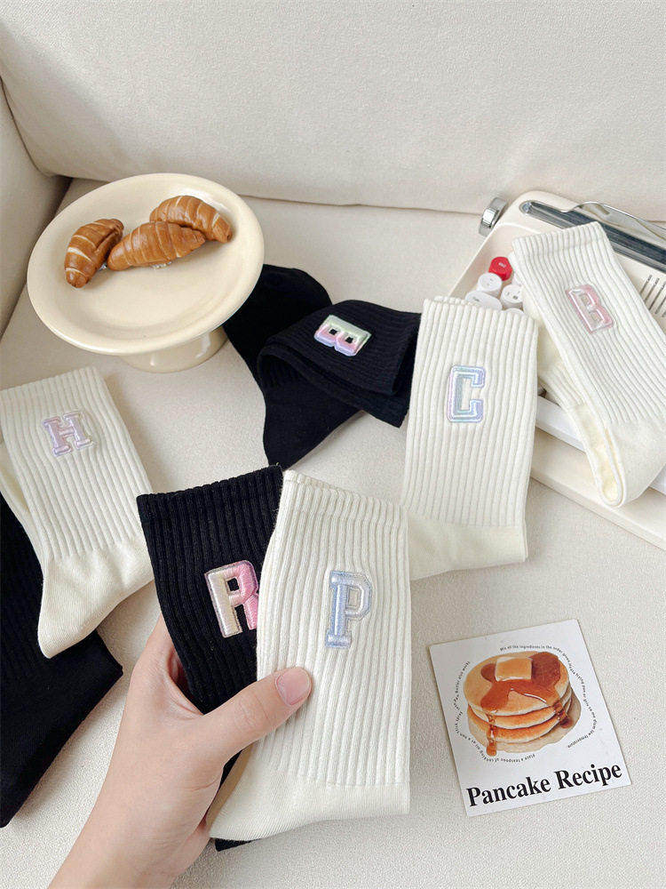 英文立體漸變色刺繡高筒女襪