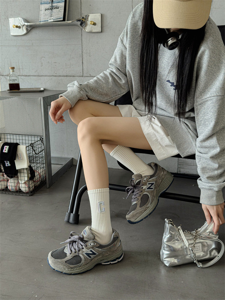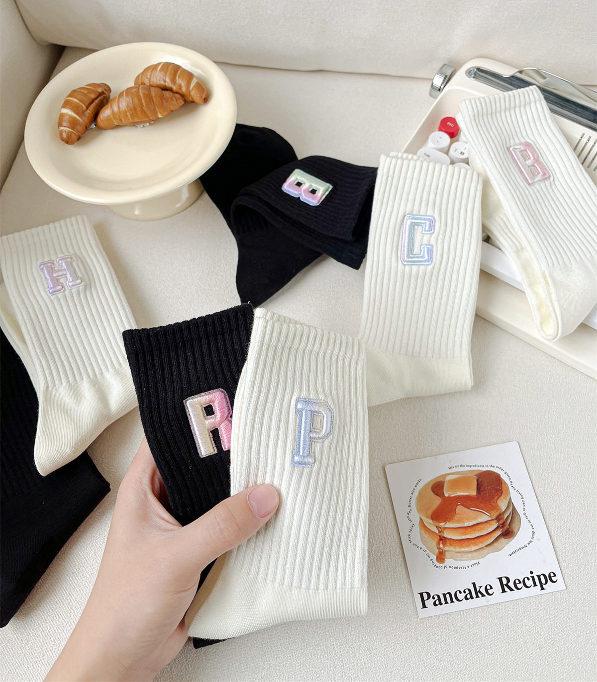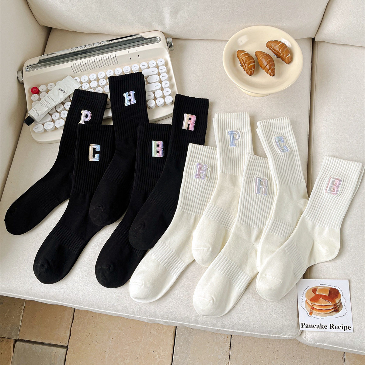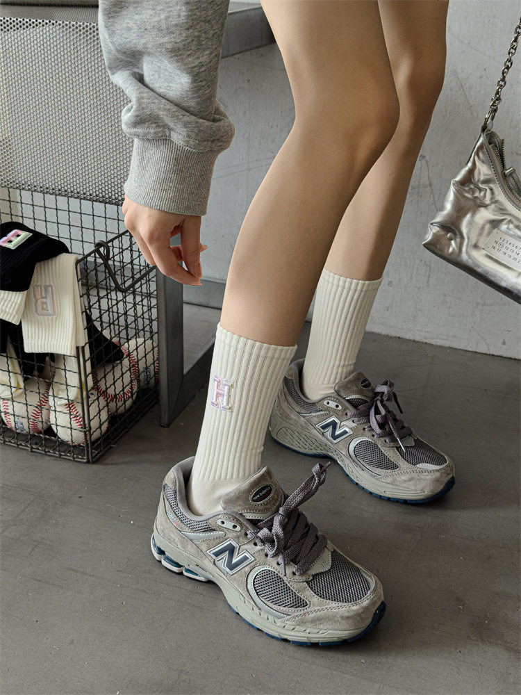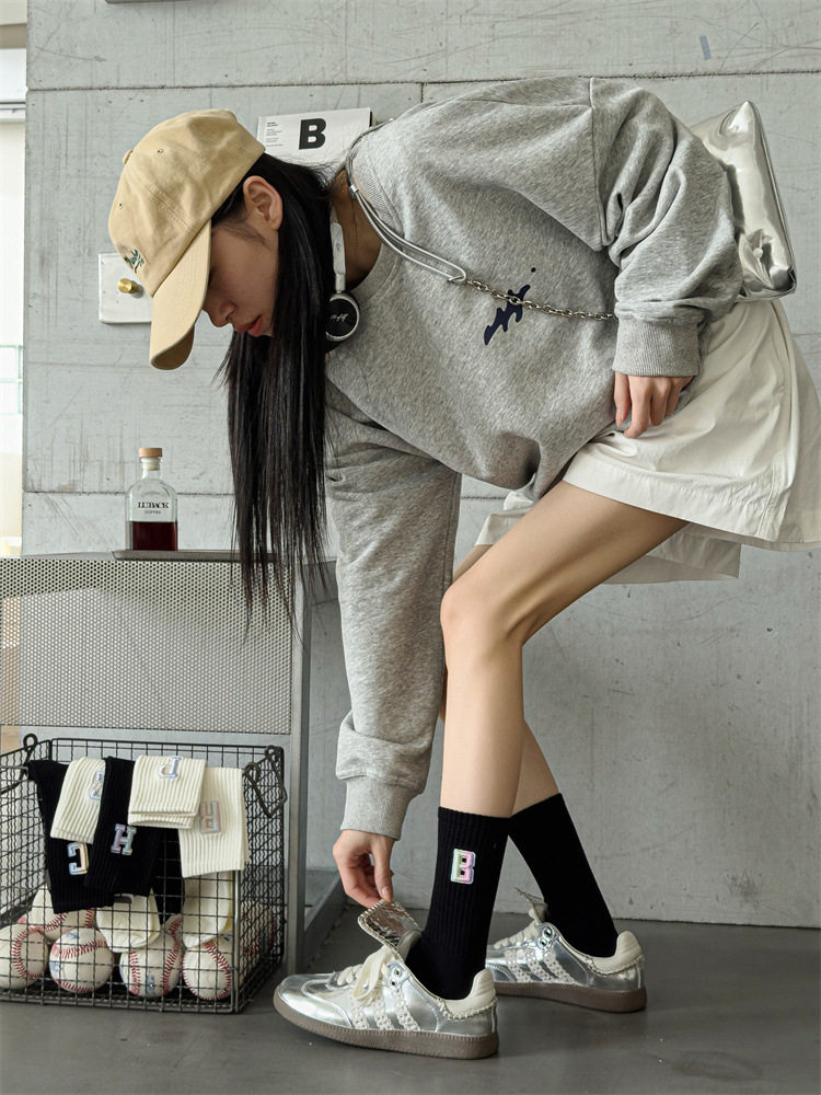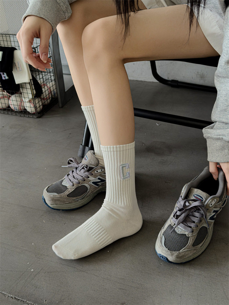 英文立體漸變色刺繡高筒女襪