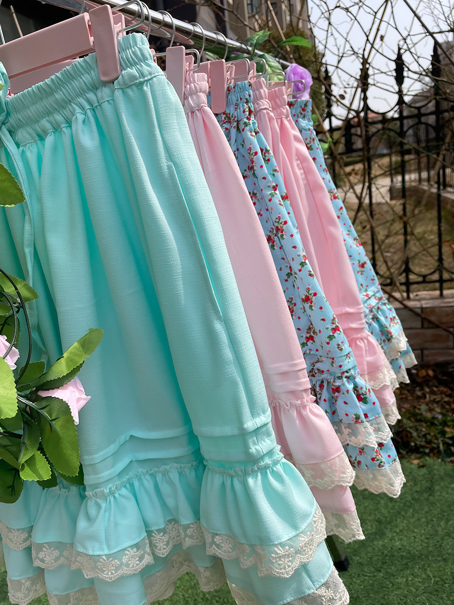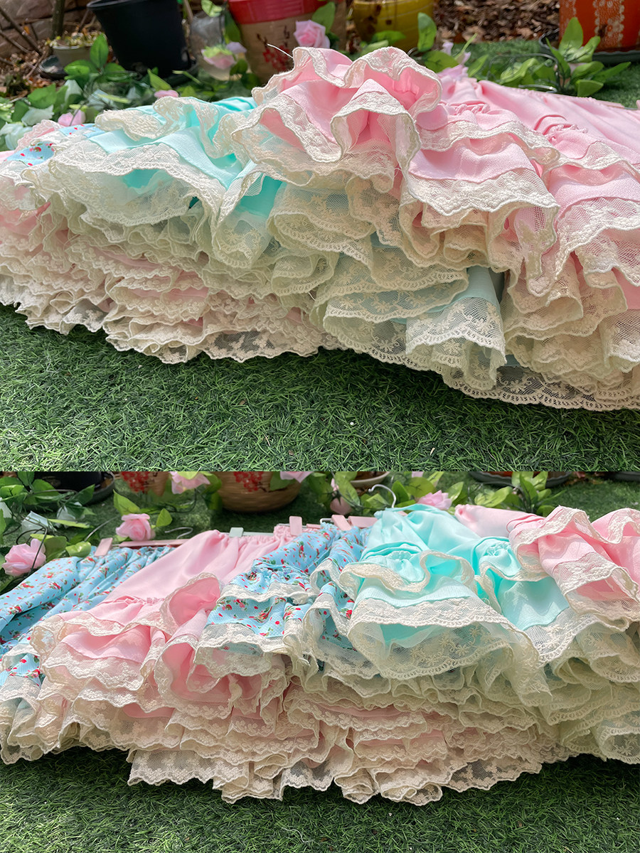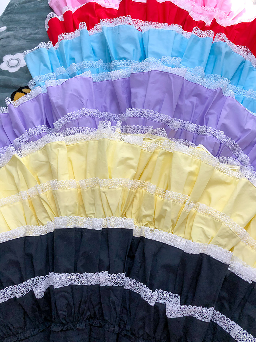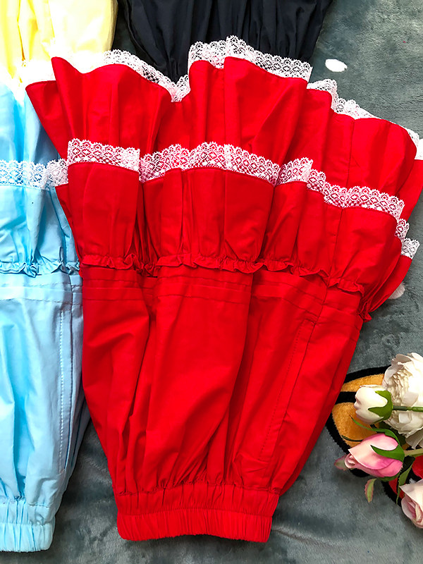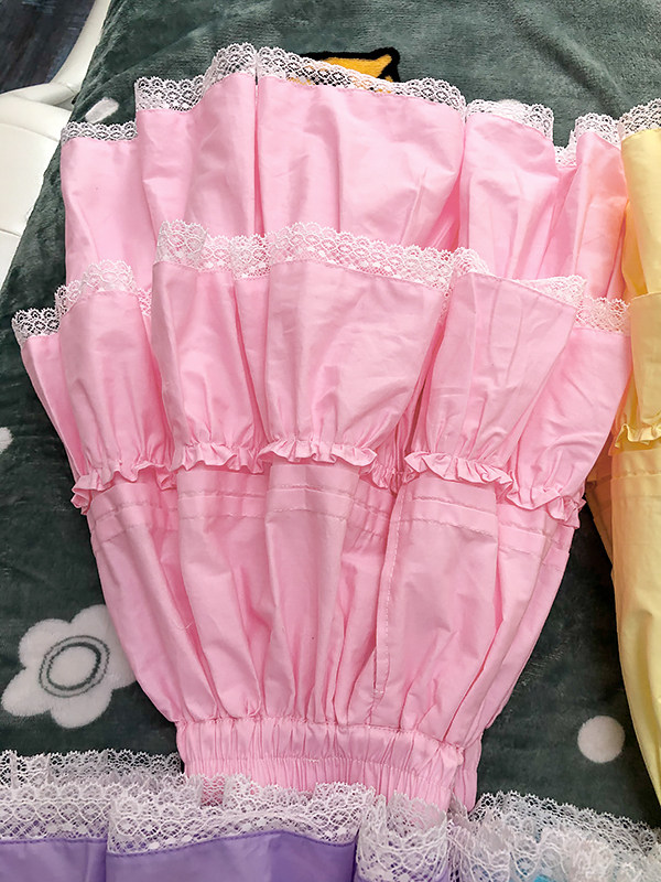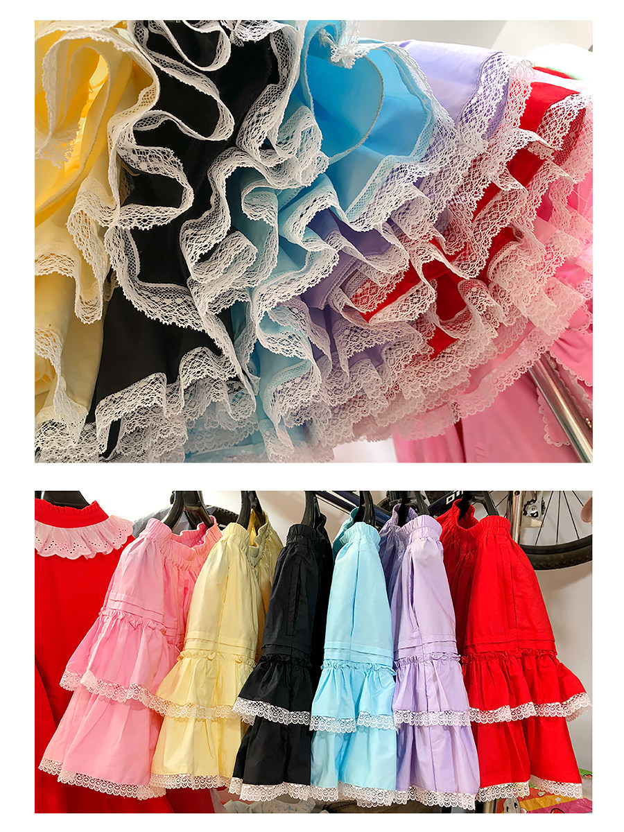 裙擺露出少許的蕾絲花邊,點睛效果呦~~花邊均為白色.