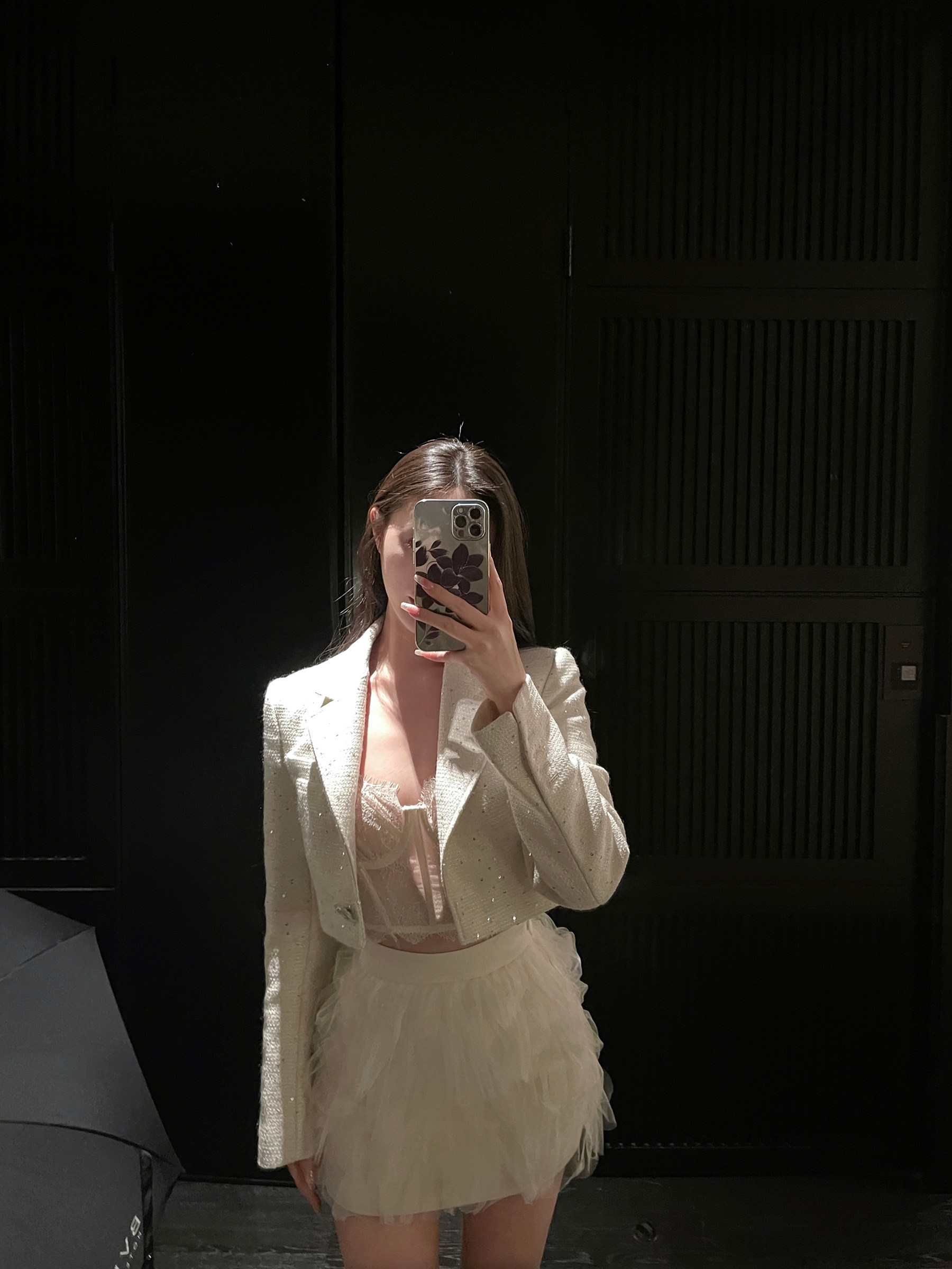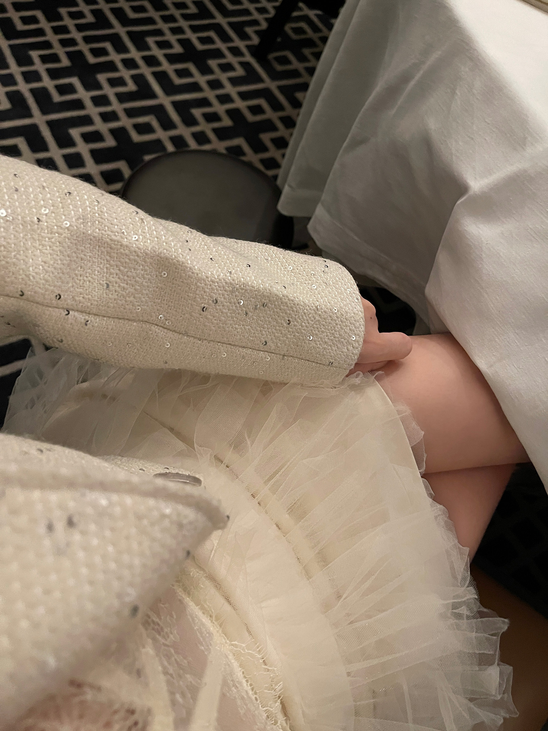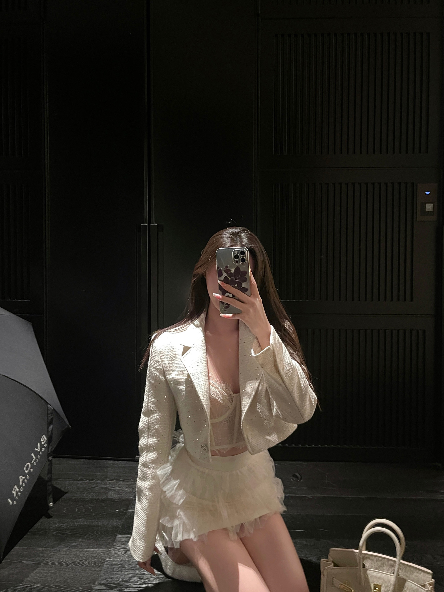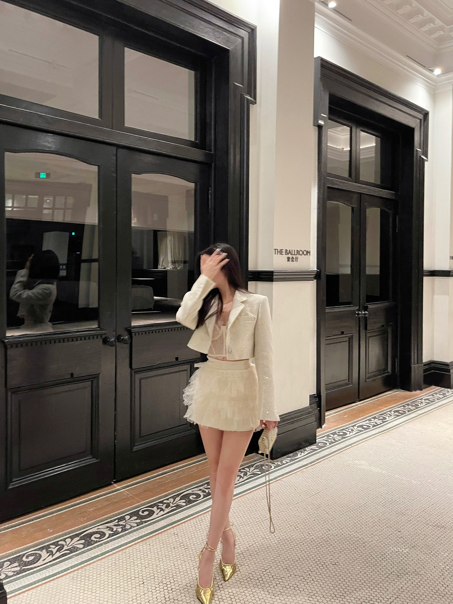 外套采用亮片編織小香面料 甜貴高級 自帶精致感