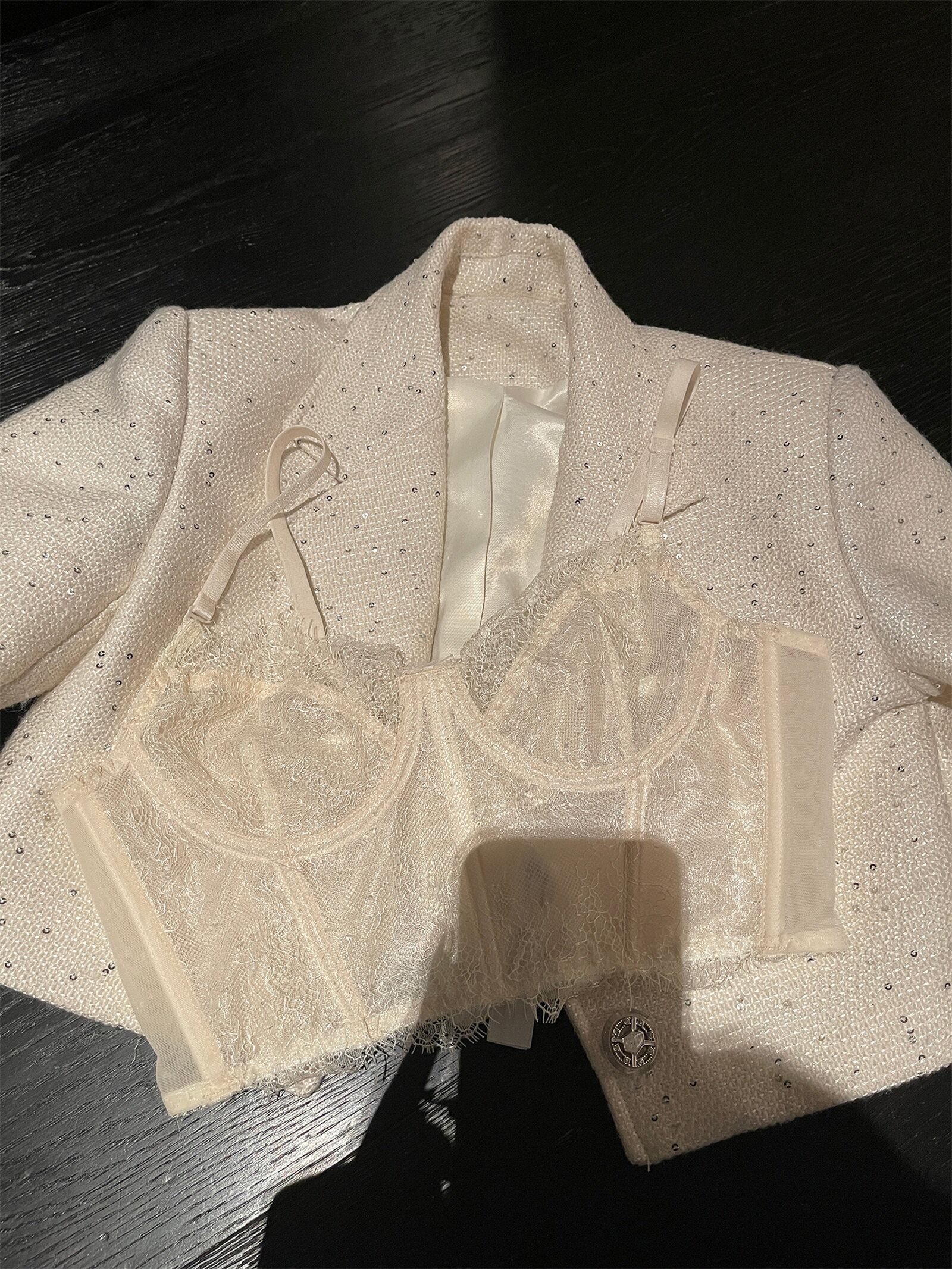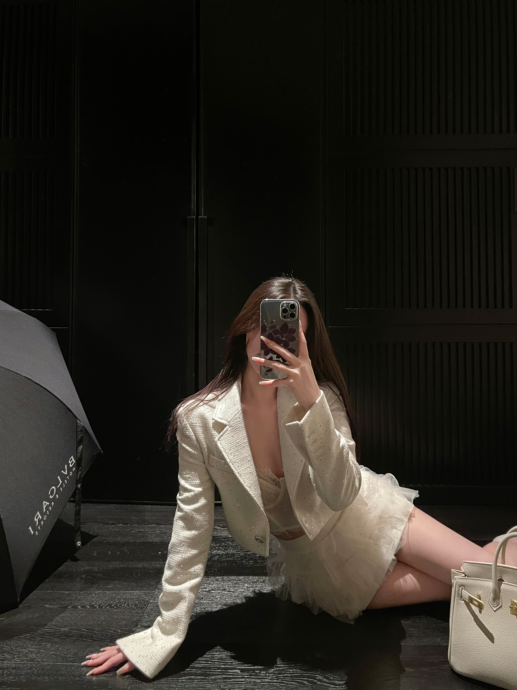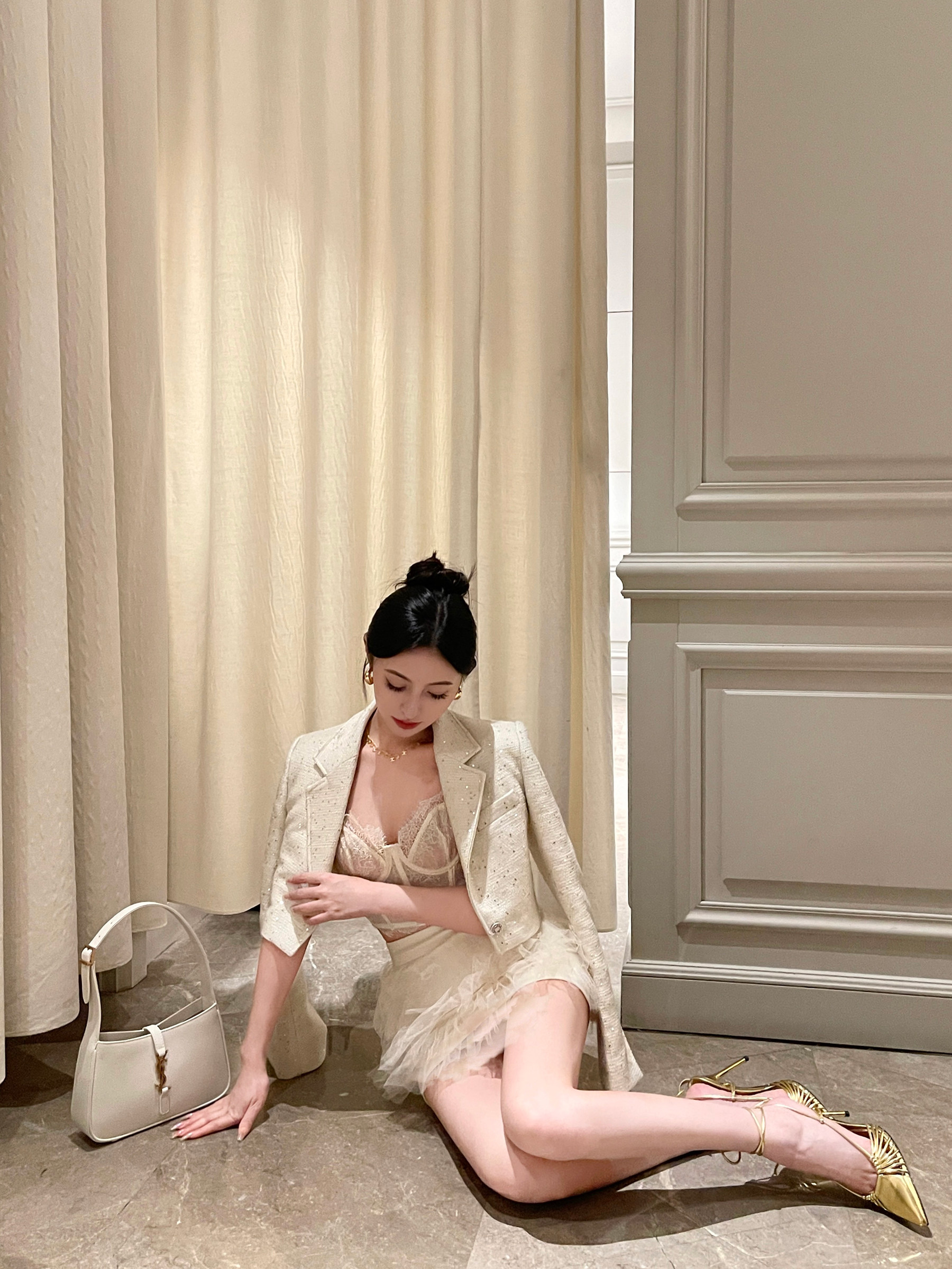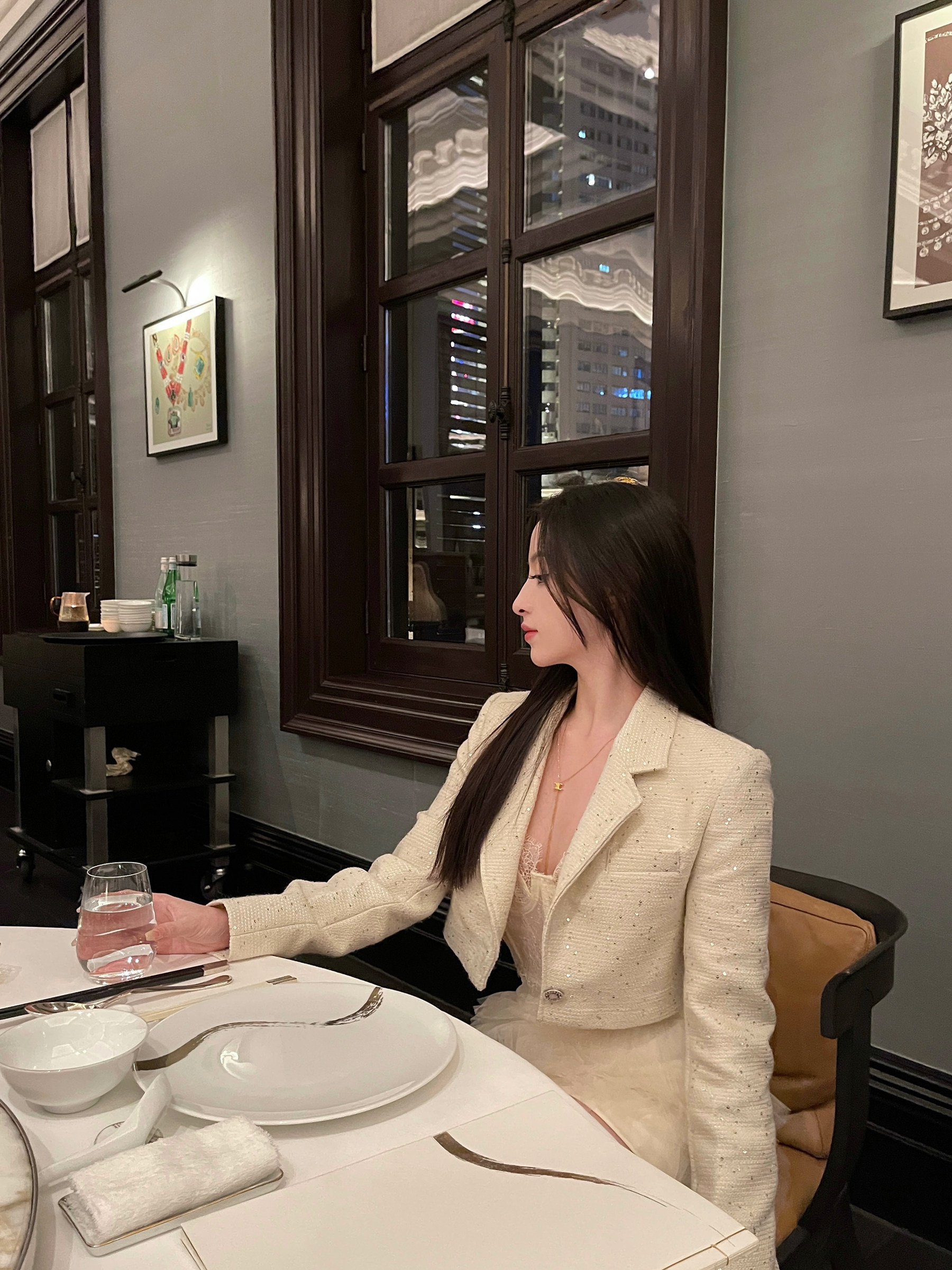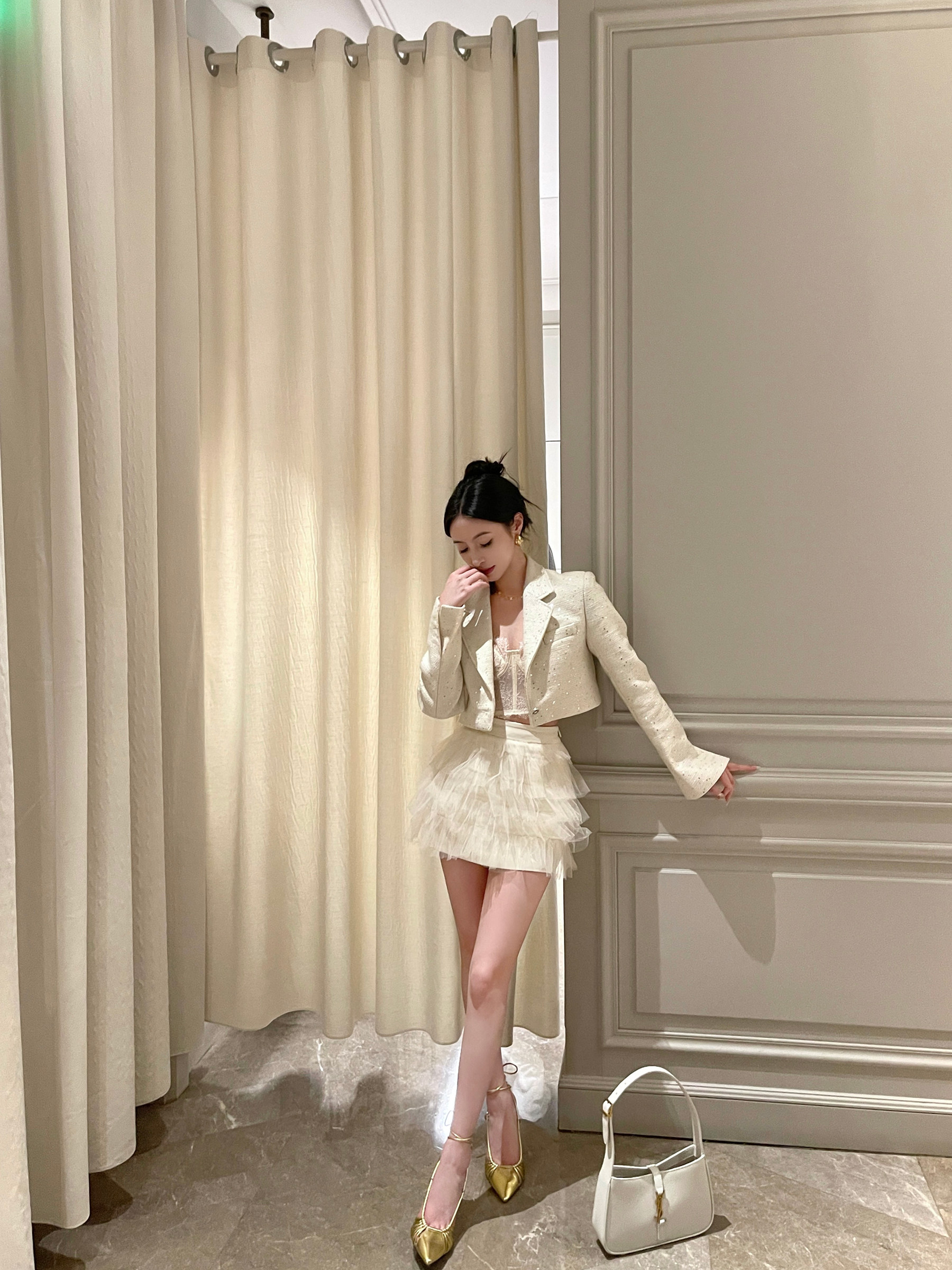 外套采用亮片編織小香面料 甜貴高級 自帶精致感