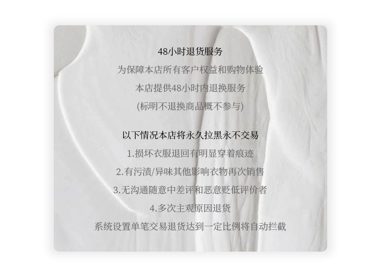 因商品為海外寄送,若拒收包裹,包裹將會退回海關並被銷毀,且訂單款項不會退款。請務必在下單前確認收件地址及商品內容無誤。 - 非瑕疵商品退貨手續費