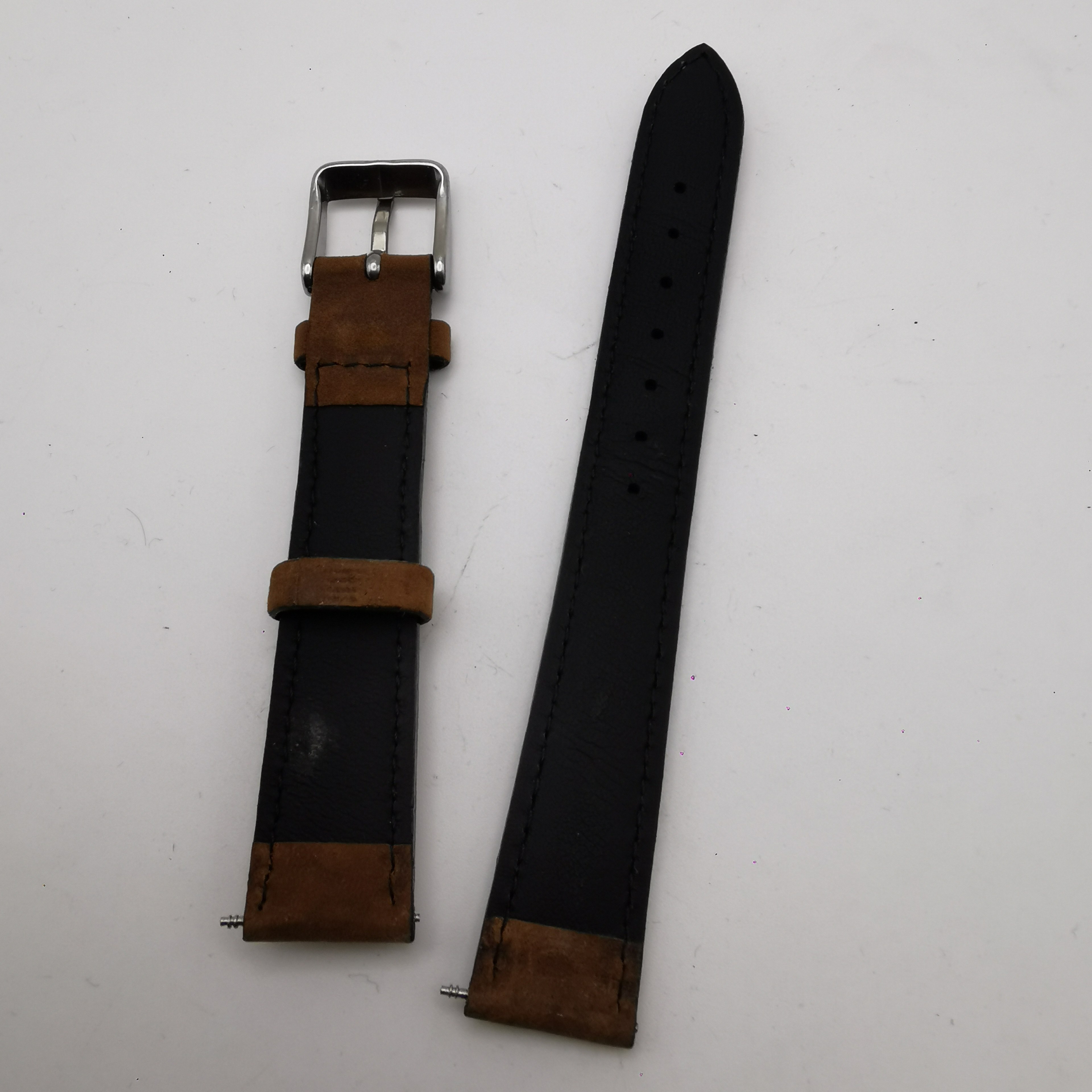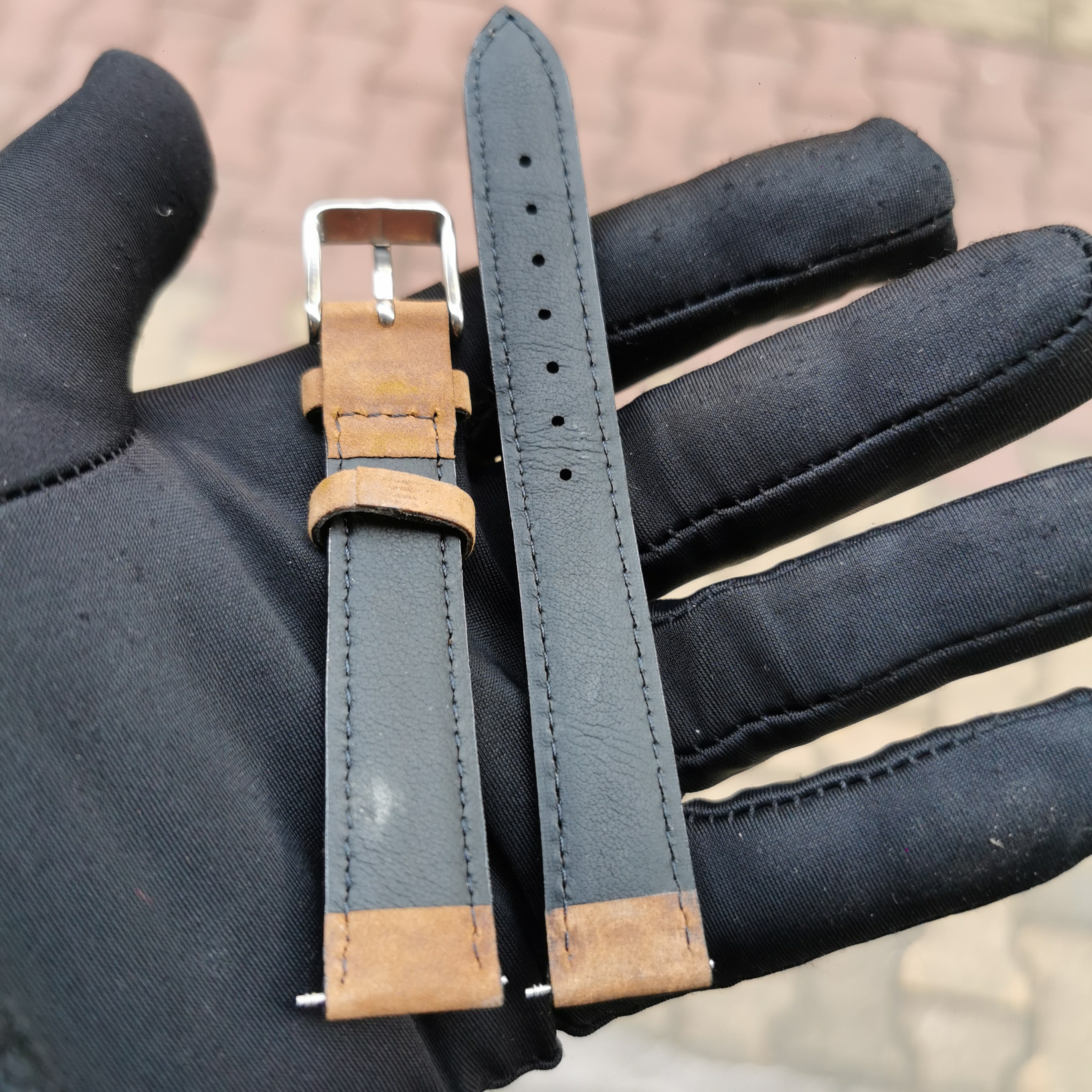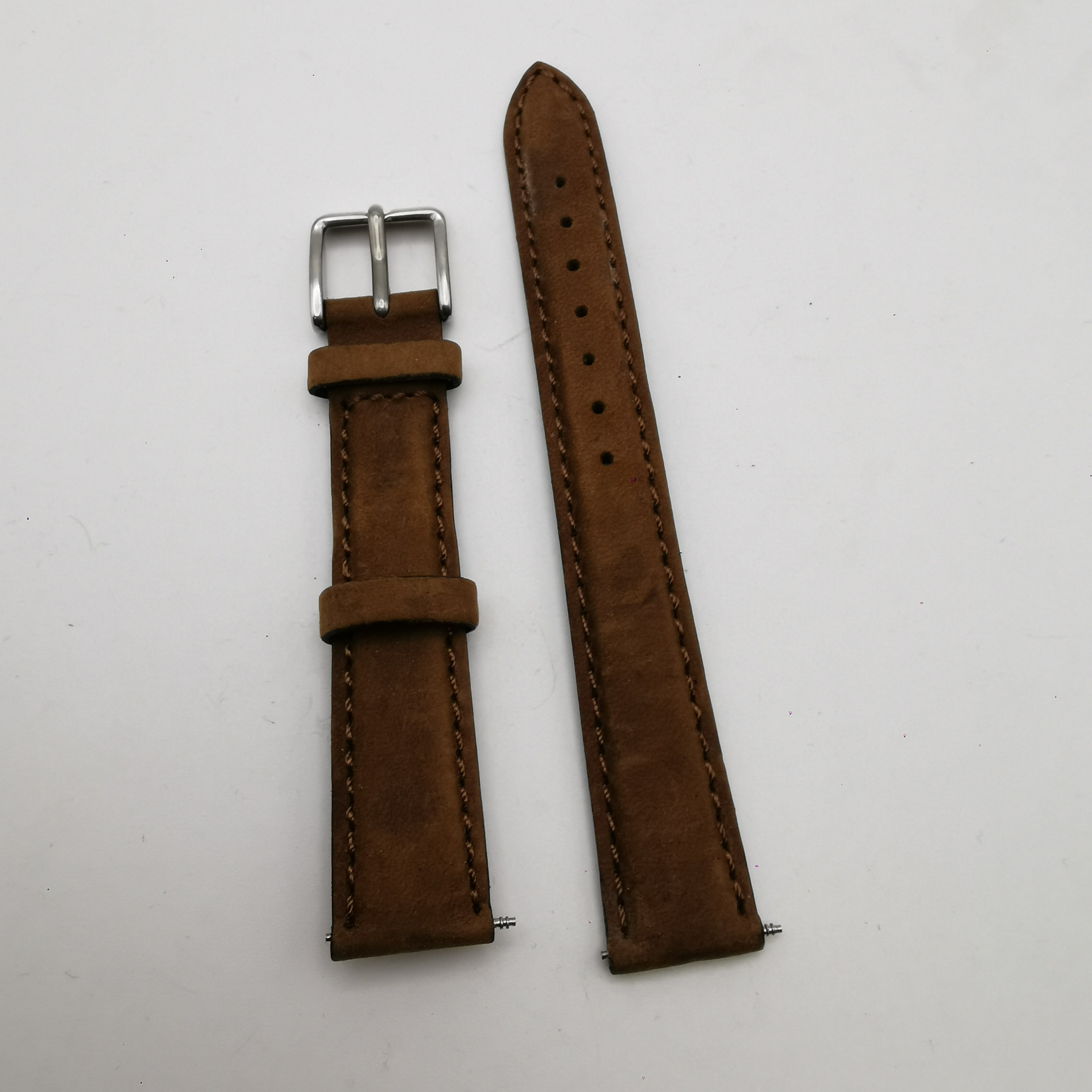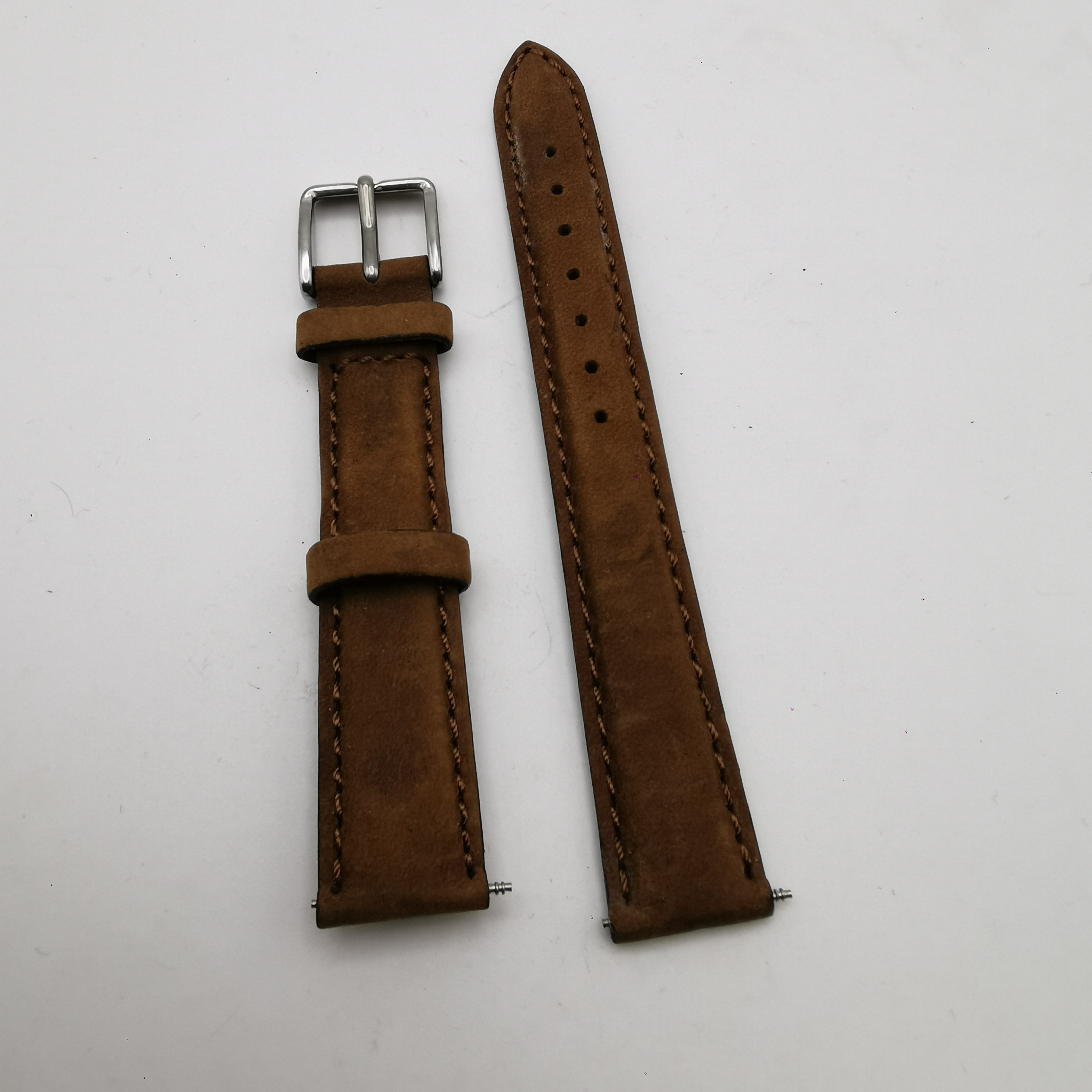16mm真牛皮表帶,尺寸16*14 mm(表扣處尺寸),雙面真皮,質量不是一般的好。棕色磨砂皮