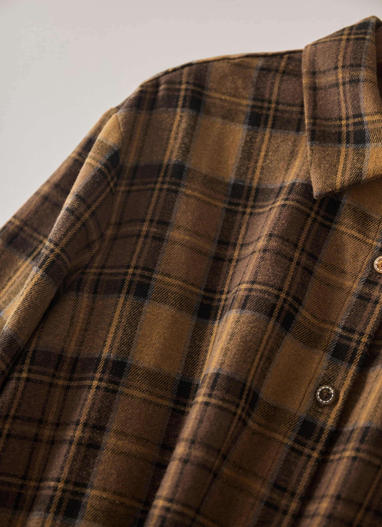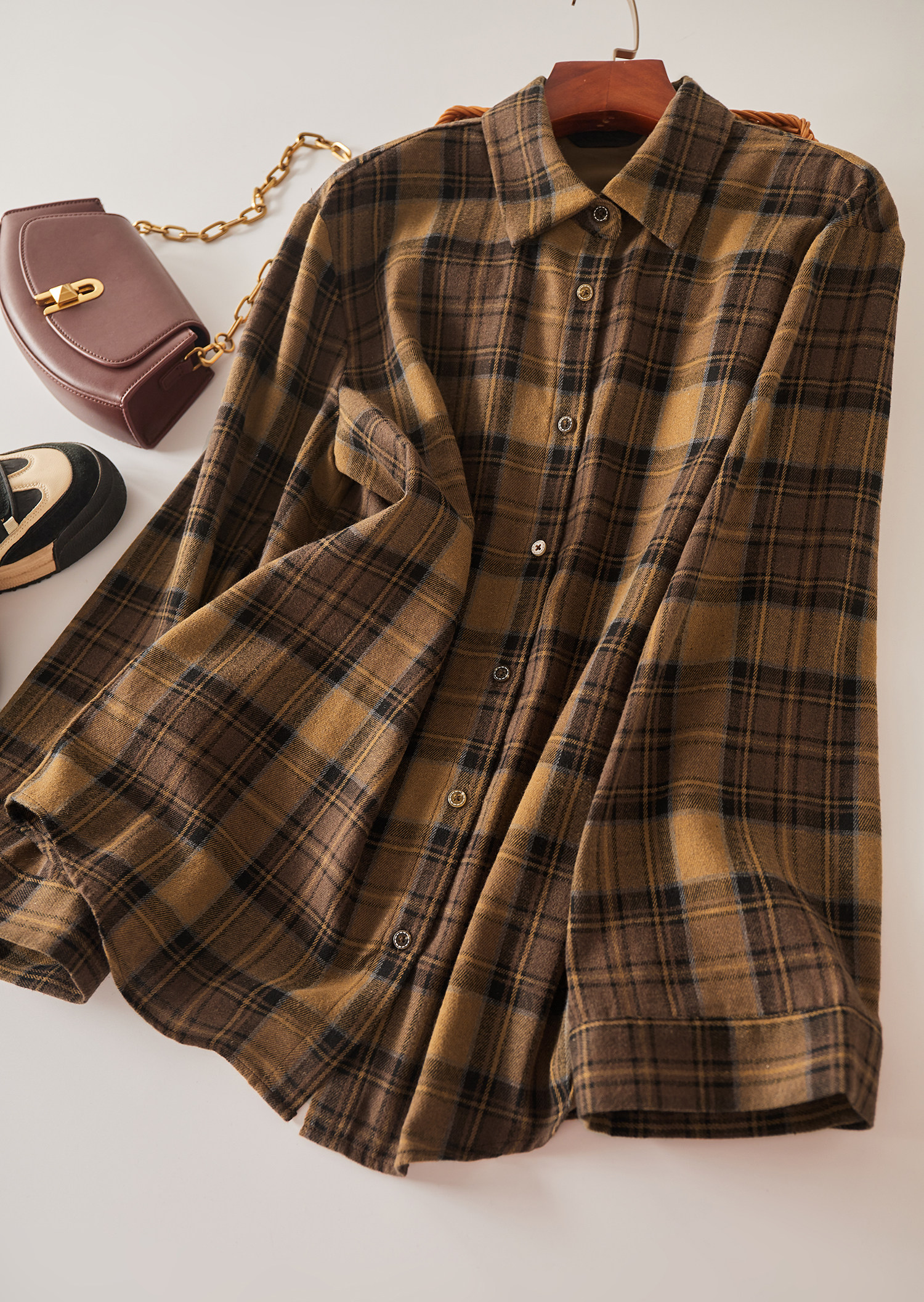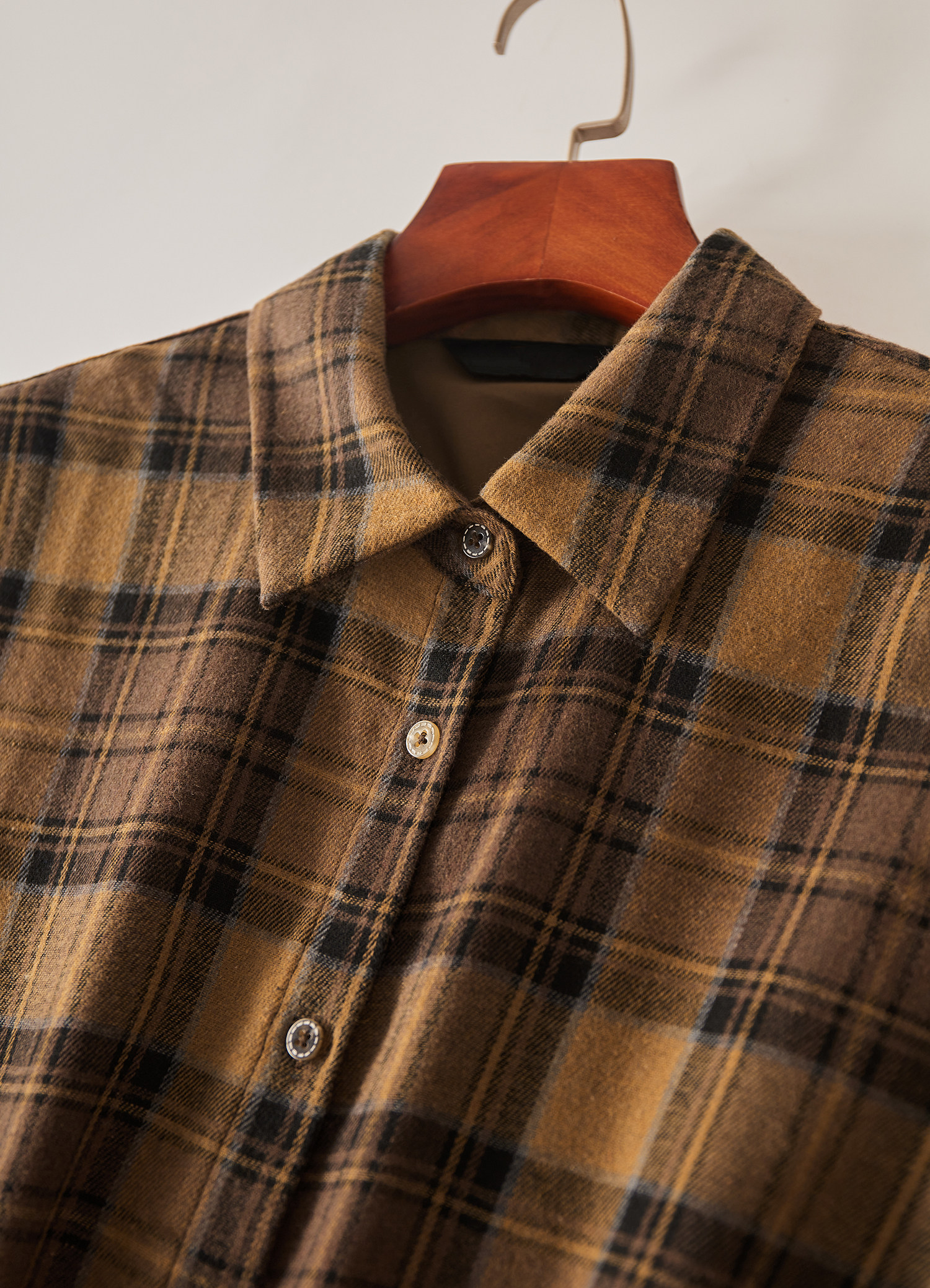 摩登復古感磨毛格子襯衫,新定義女性優雅
