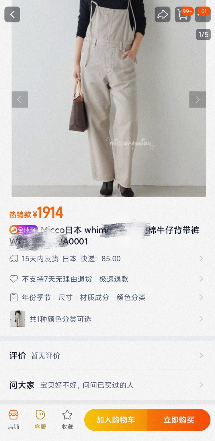 Whim家大人氣,精致印象的成人牛仔背帶褲