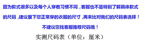 (注:衣服均為人工手量,有1- 4CM左右誤差屬正常)