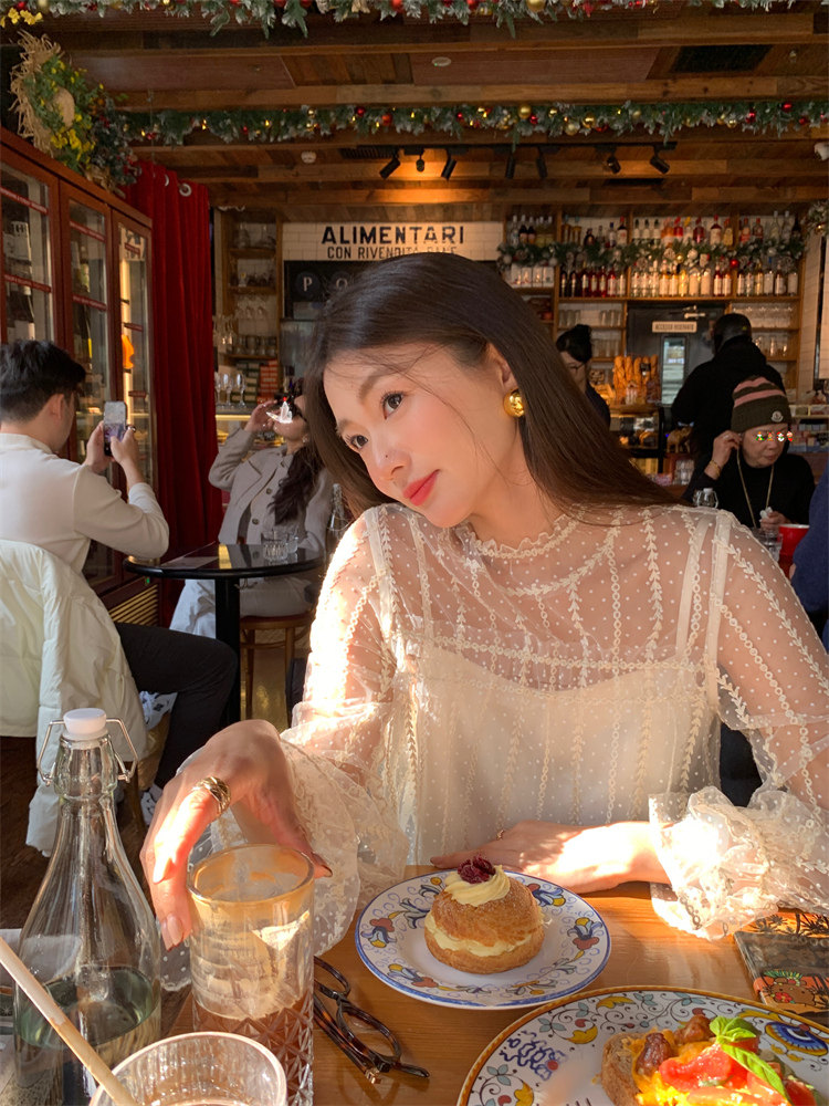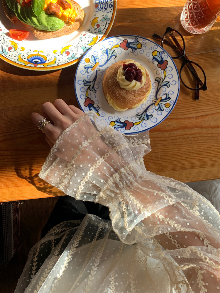 袖口處做的是喇叭袖口,hen有小女人的優雅俏皮感,好看的!