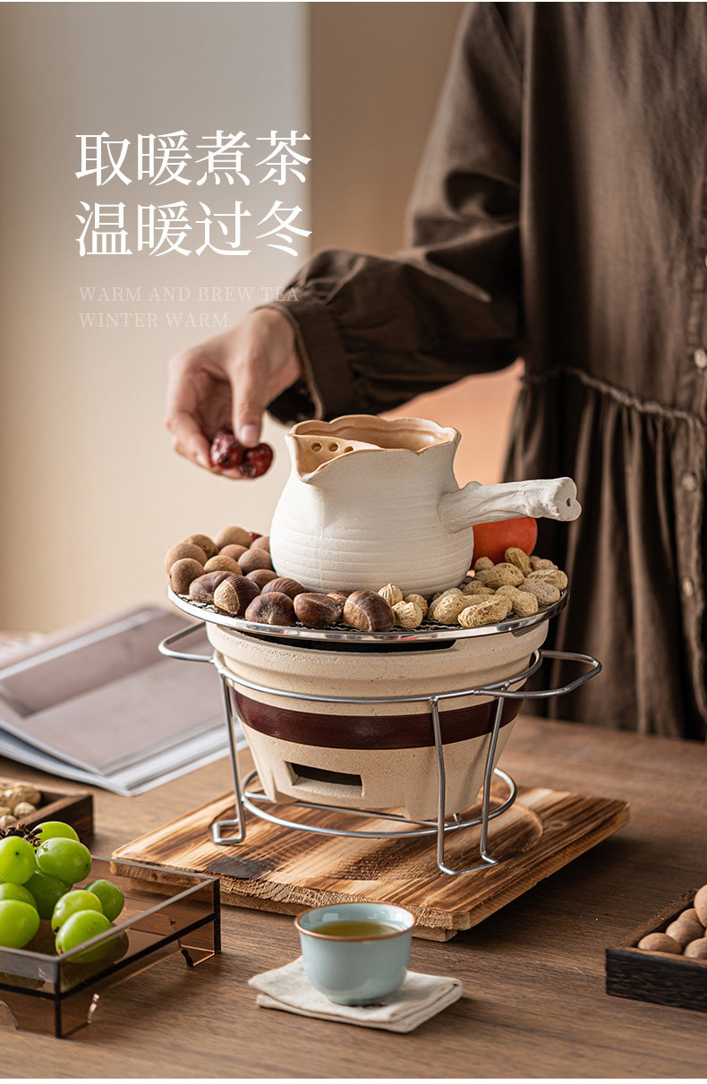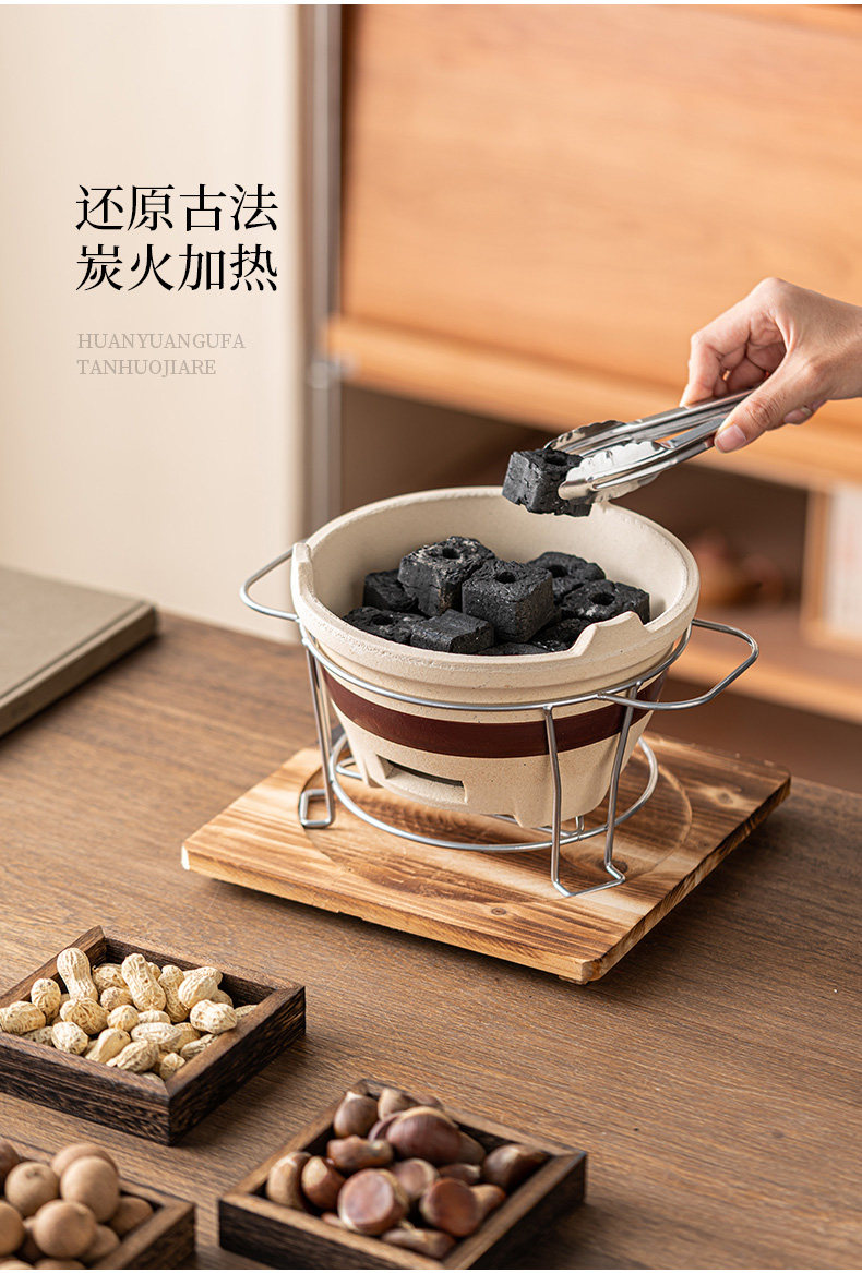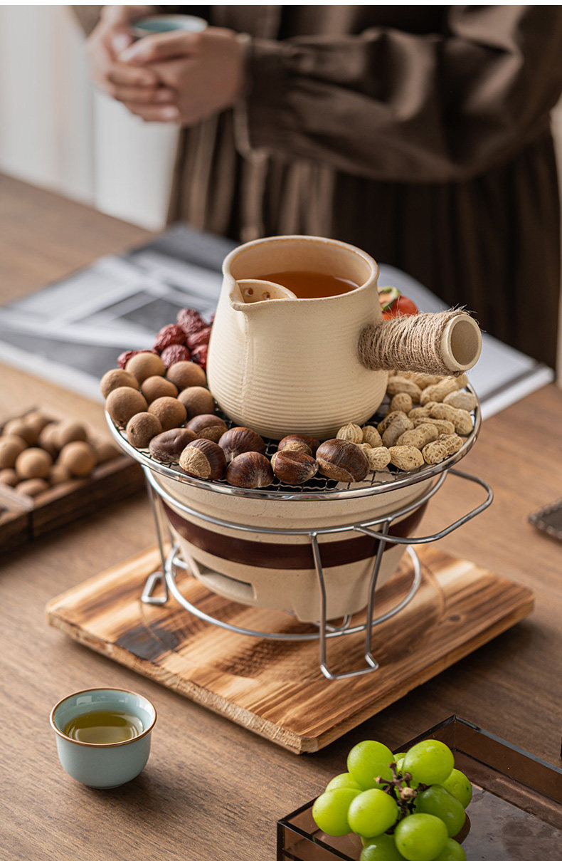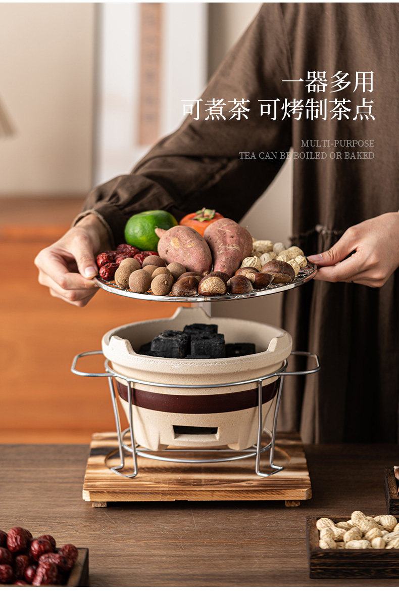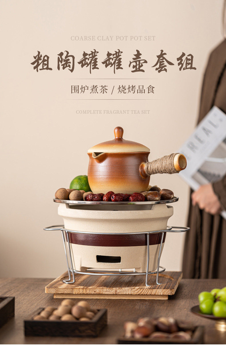 圍爐煮茶壺的壺帶蓋帶釉器具套裝烤奶壺可明火干燒大容量超大號碳爐燒烤爐碳火爐九宮格套裝家用室內室外云南綁麻繩食材盤點心盤小碟子盤子果盤陶瓷果盤圍爐木格子