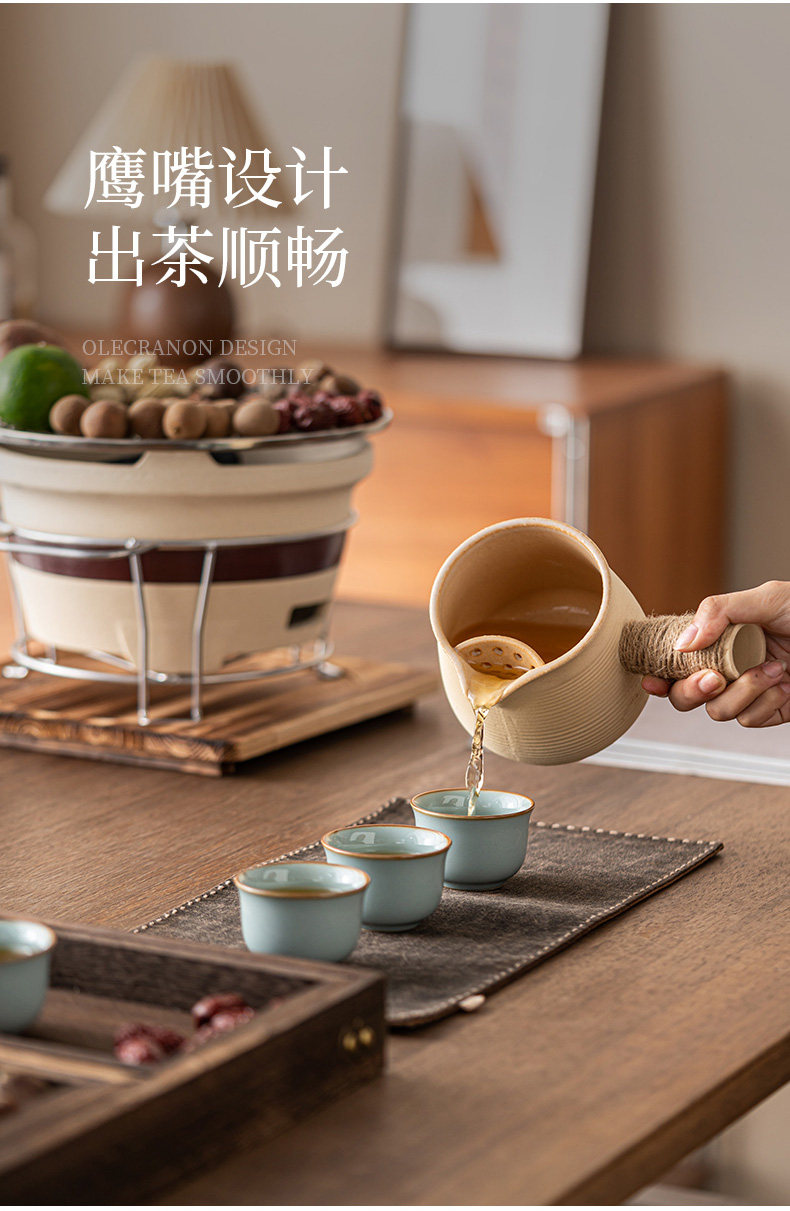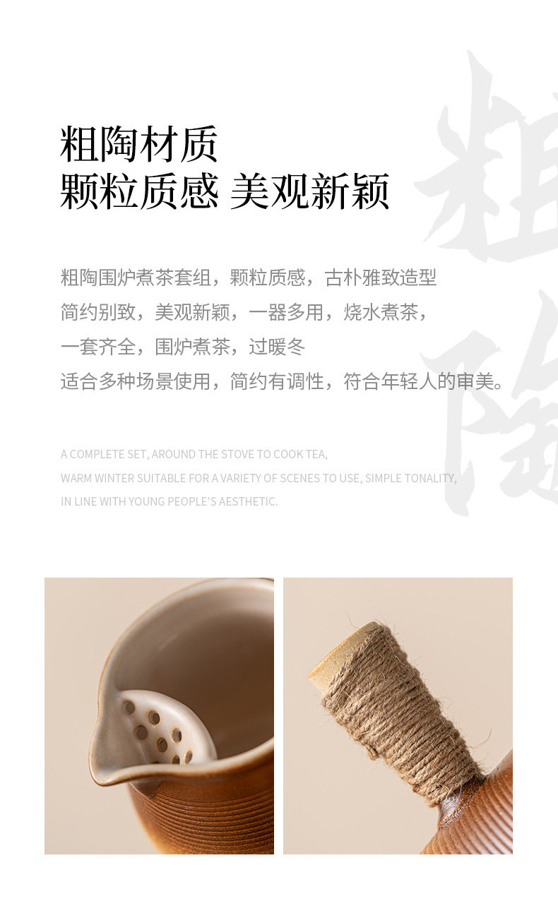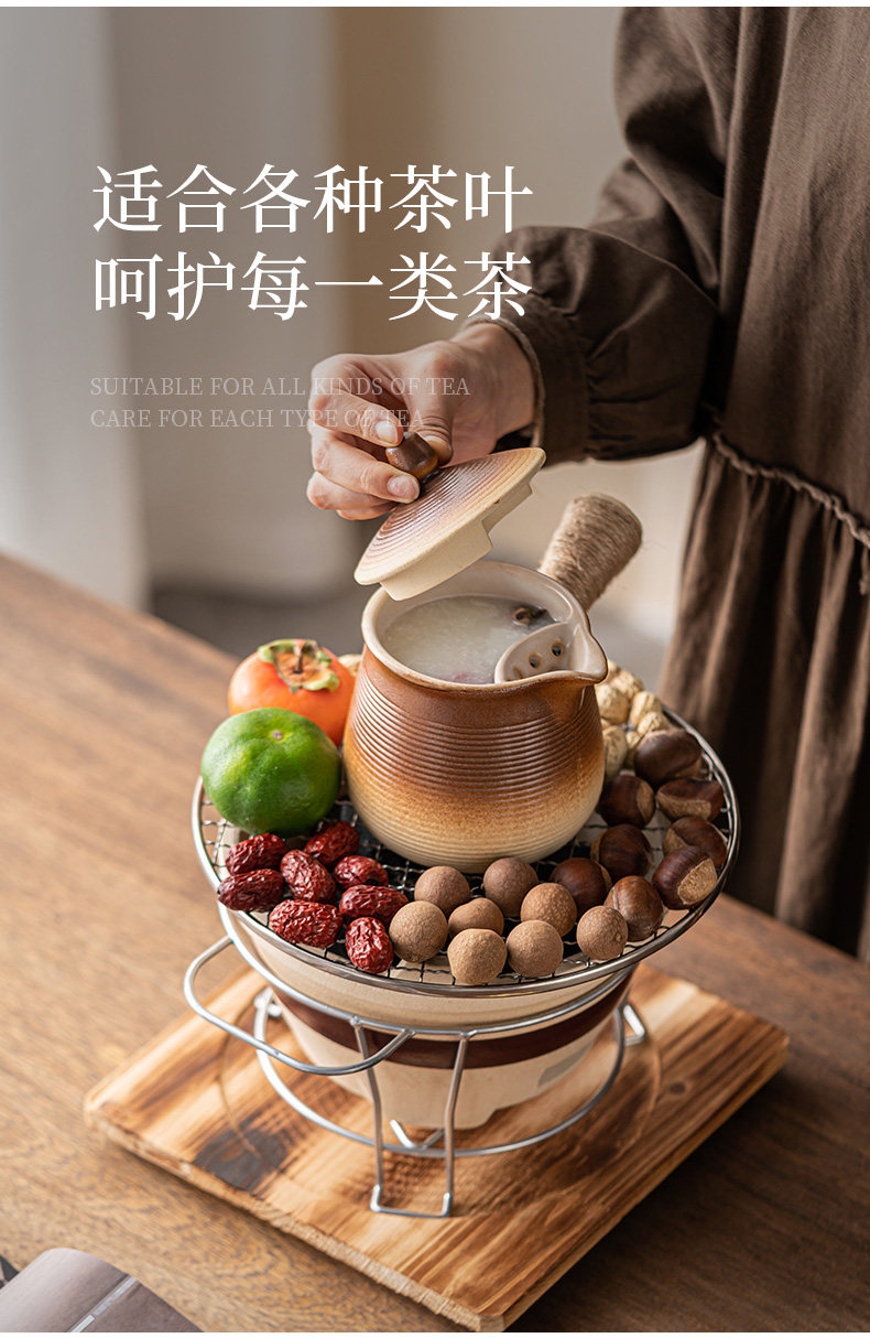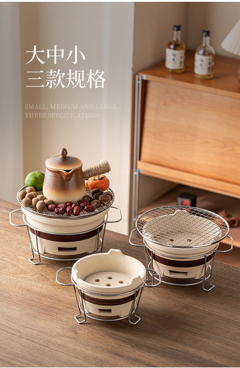 圍爐煮茶壺的壺帶蓋帶釉器具套裝烤奶壺可明火干燒大容量超大號碳爐燒烤爐碳火爐九宮格套裝家用室內室外云南綁麻繩食材盤點心盤小碟子盤子果盤陶瓷果盤圍爐木格子
