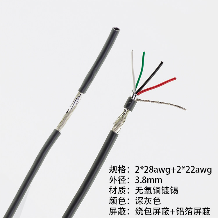2725 28AWG/1P+26AWG*2C+鋁箔+編織原裝進口RVVP線 28AWG 305米 高柔的USB線 28AWG +26AWG