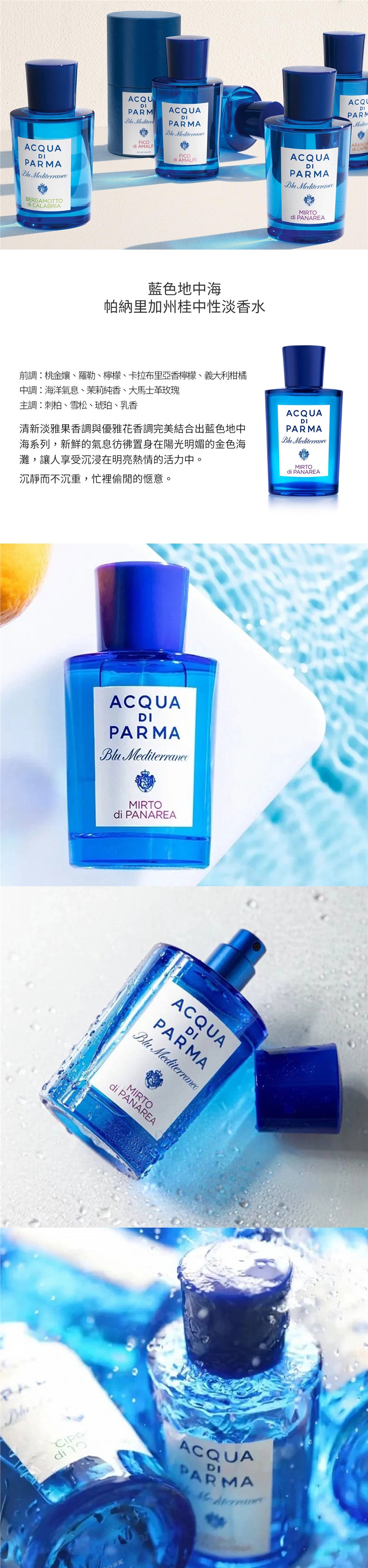 清新淡雅果香調與優雅花香調完美結合出藍色地中海系列,新鮮的氣息彷彿置身在陽光明媚的金色海灘,讓人享受沉浸在明亮熱情的活力中。沉靜而不沉重,忙裡偷閒的愜意。