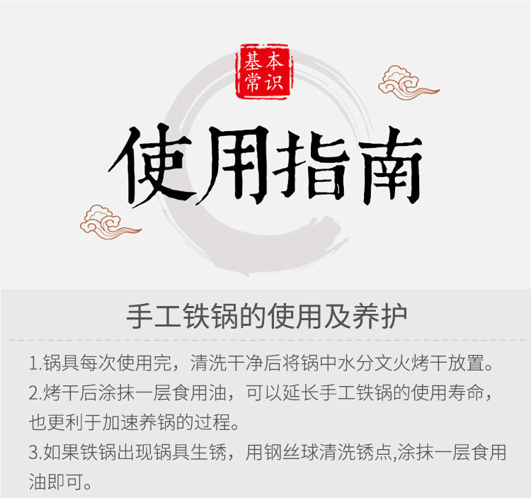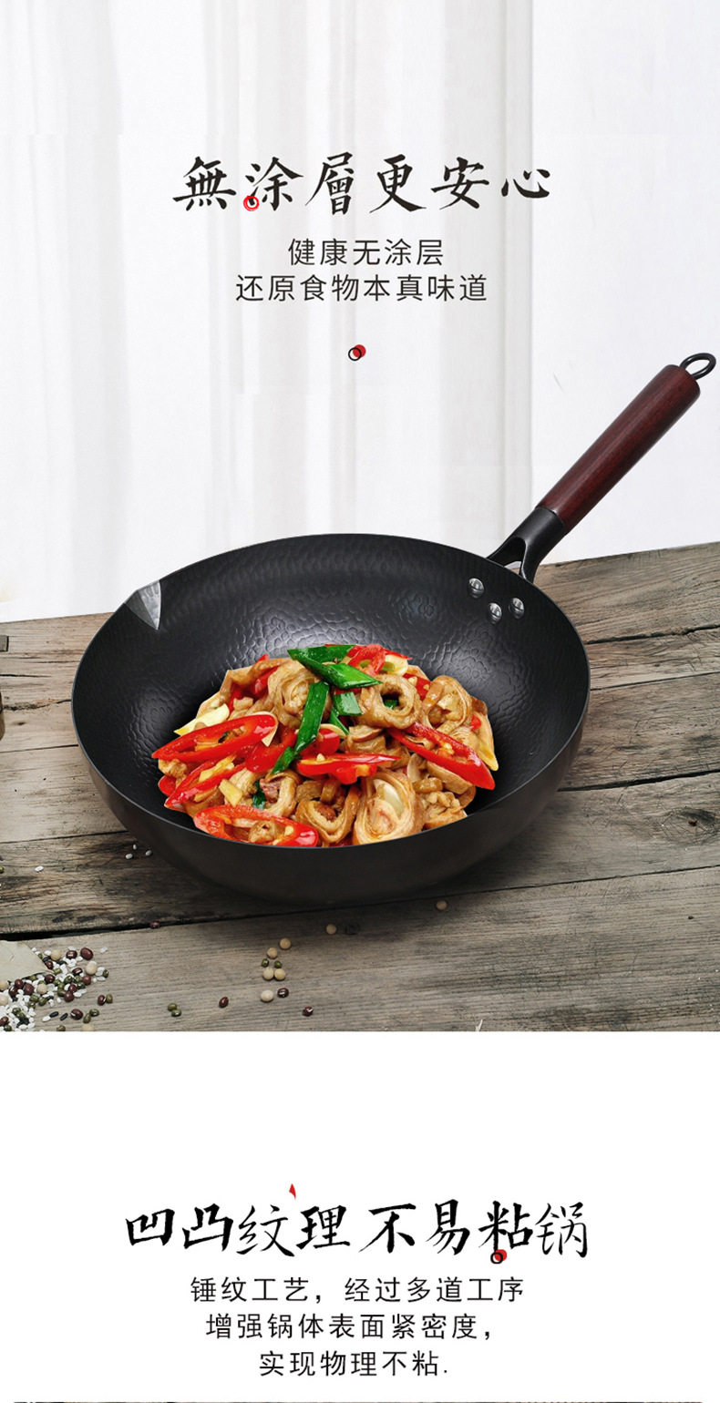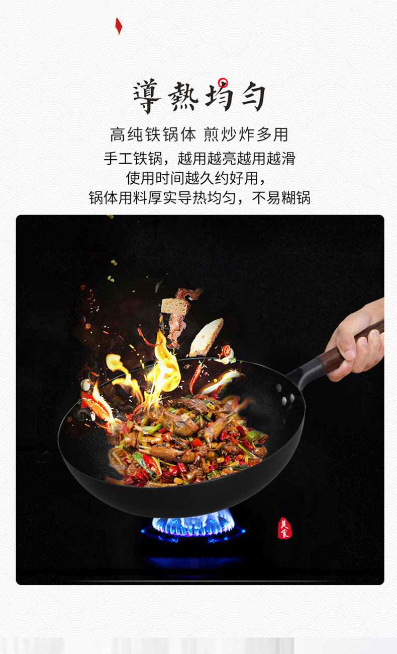 品名【手工鍛打鐵鍋】:表面無化學涂層,不懼鐵鏟鋼絲球,高純度精鐵經過高溫特殊工藝而成.堅固耐用。適用爐灶:燃氣灶、電磁爐。