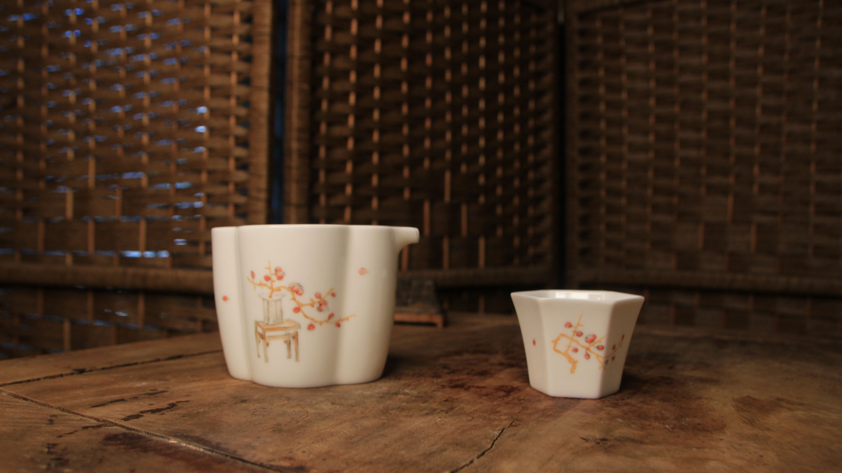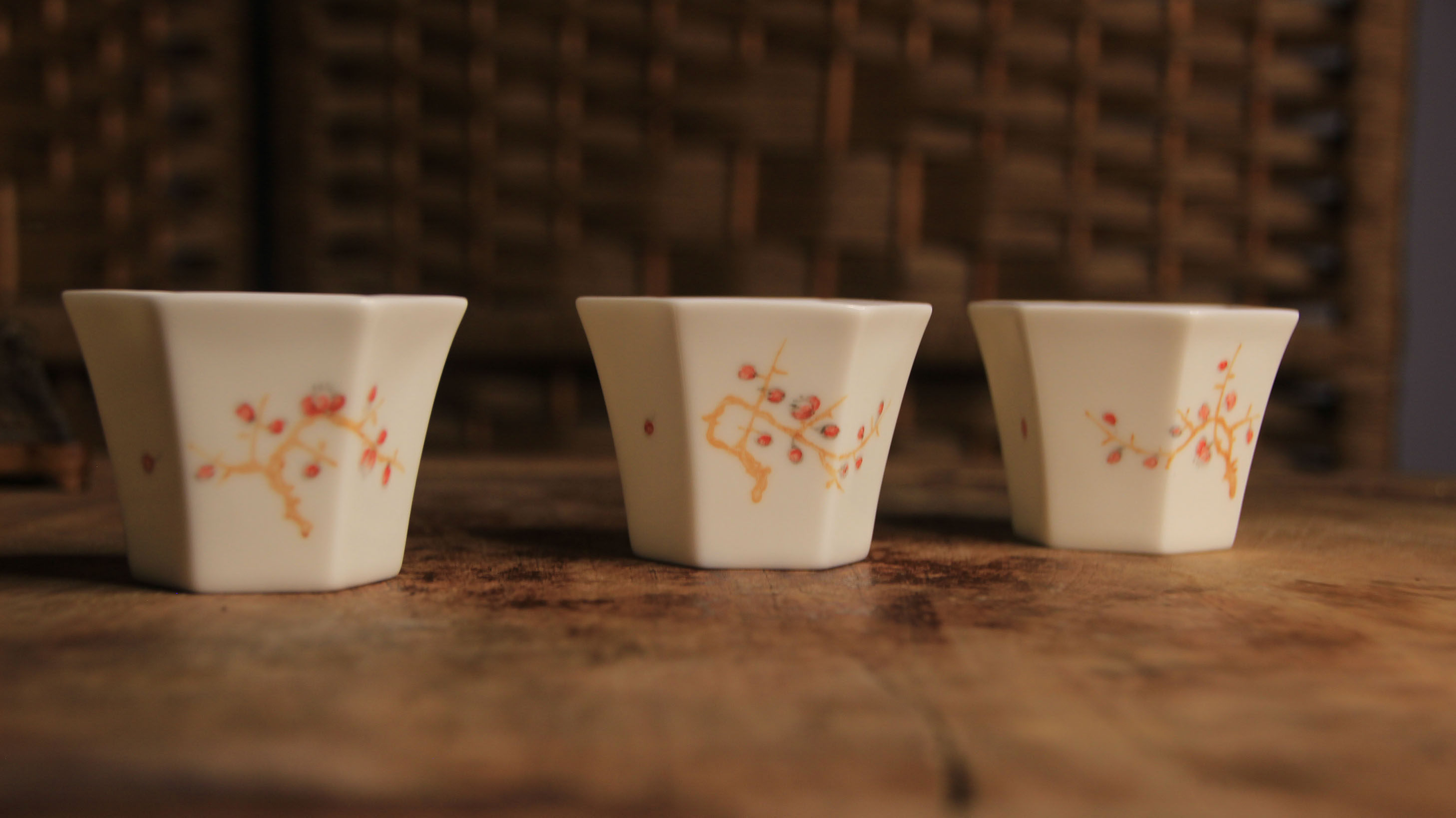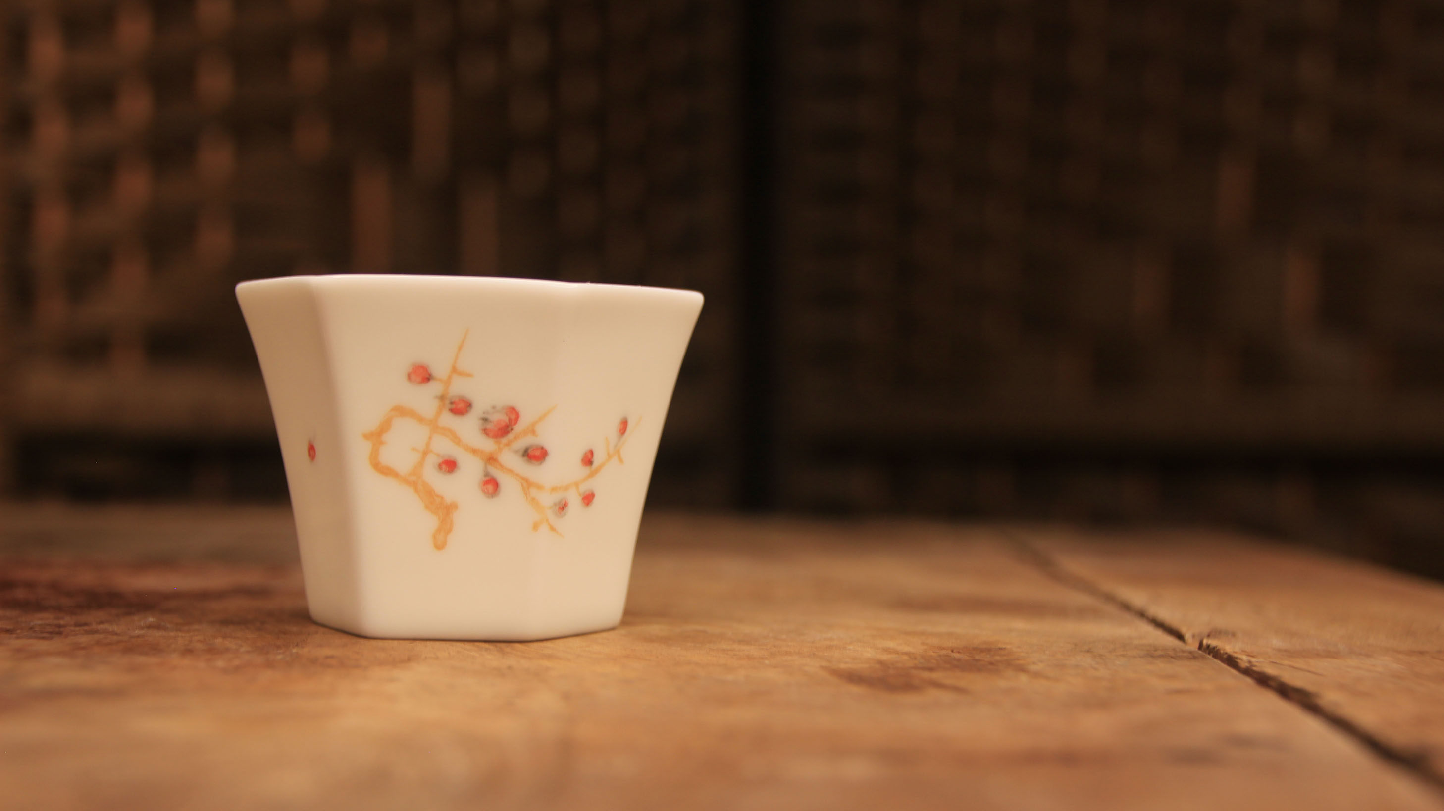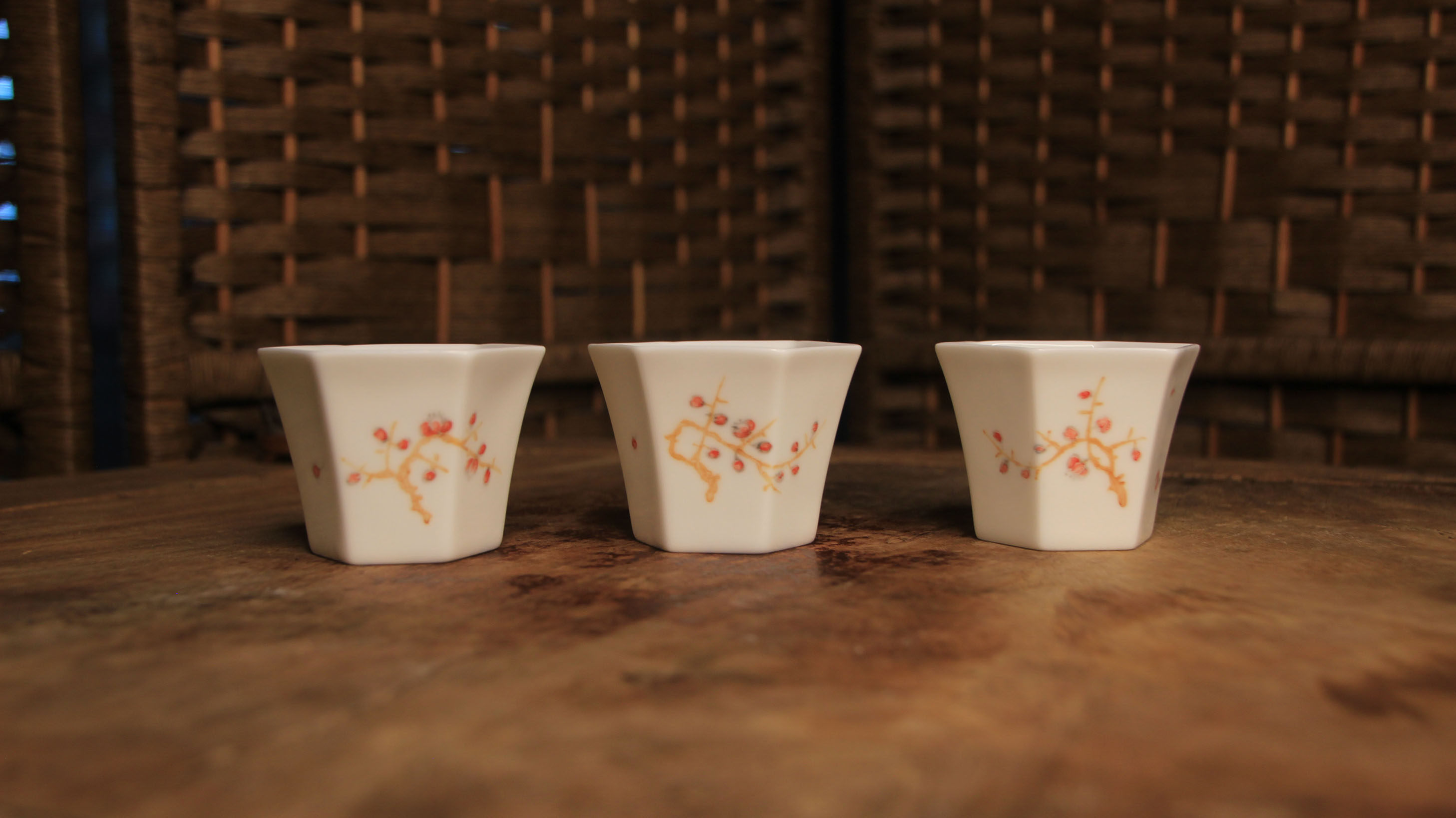 經典六方白瓷杯,刻花歲寒三友品茗杯!