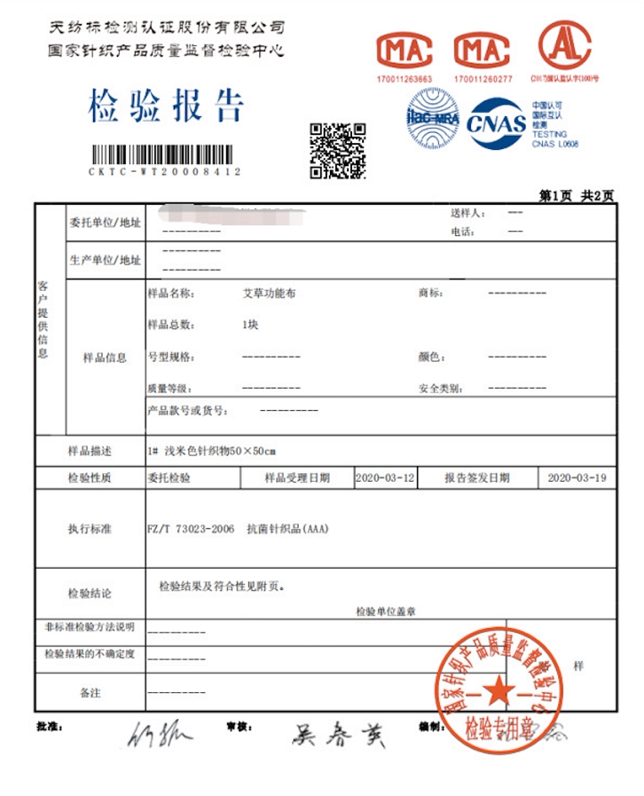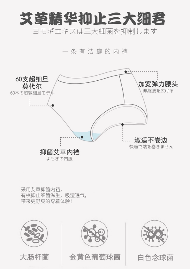 襠部采用艾草精華纖維