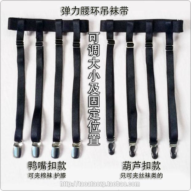 鴨嘴扣夾厚的 葫蘆扣只能夾薄的本產品為腰環式吊襪帶 穿長筒襪神器!采用彈力帶可調節設計,吊帶位置更是360度可調節