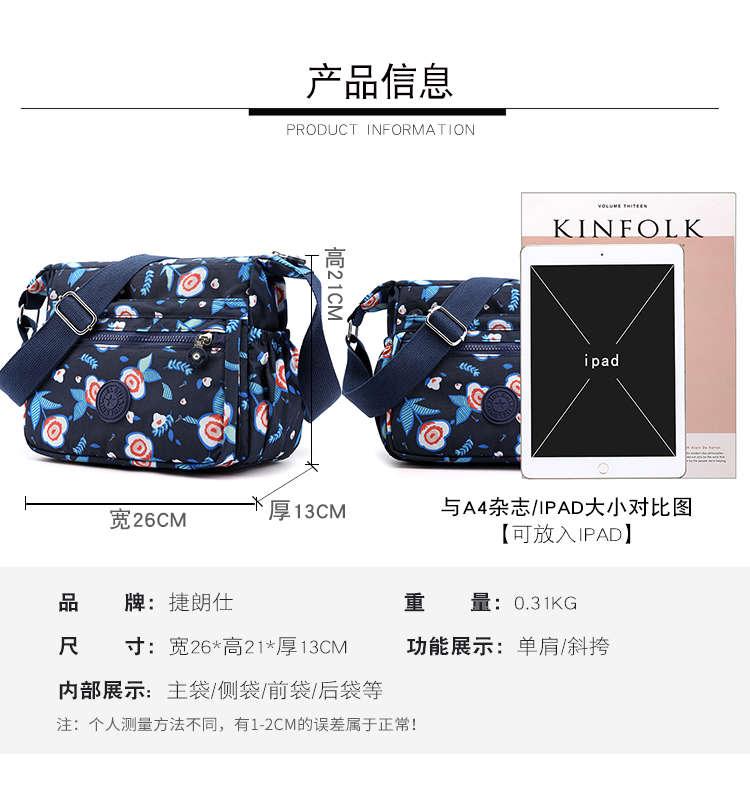 2018新款中年女包女士包包尼龍牛津紡帆布包單肩斜挎包防水媽媽包