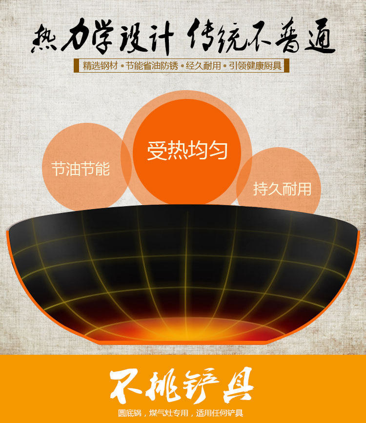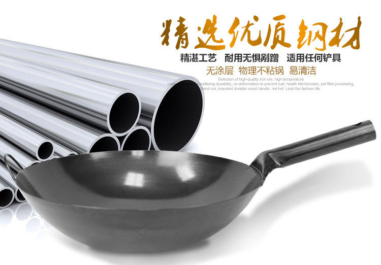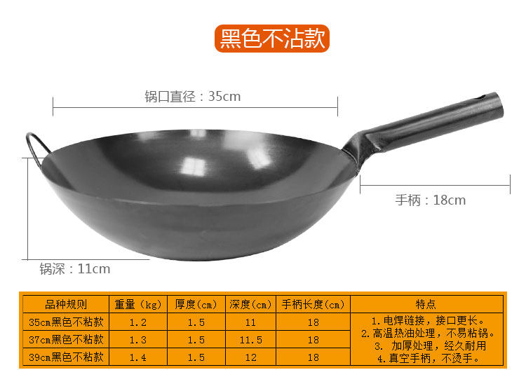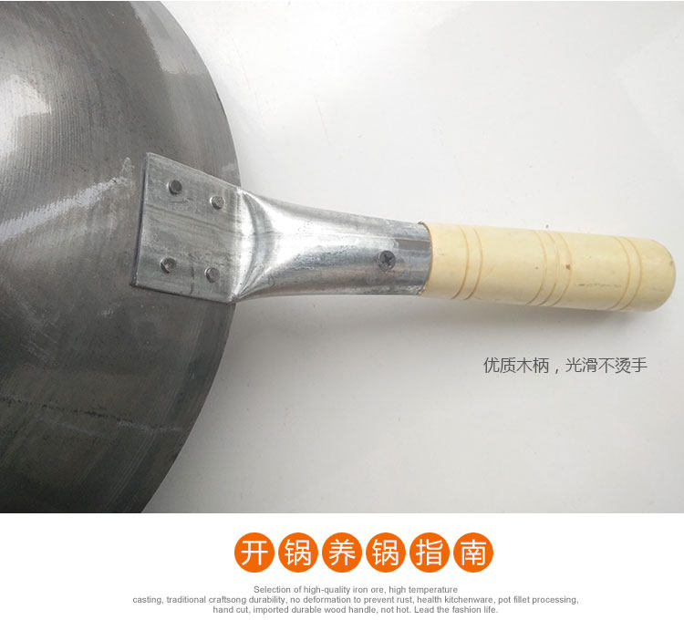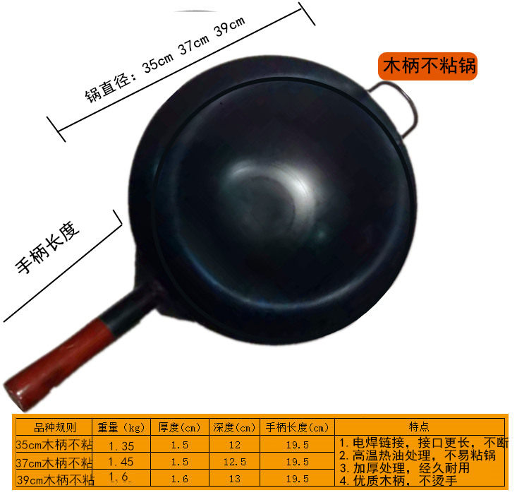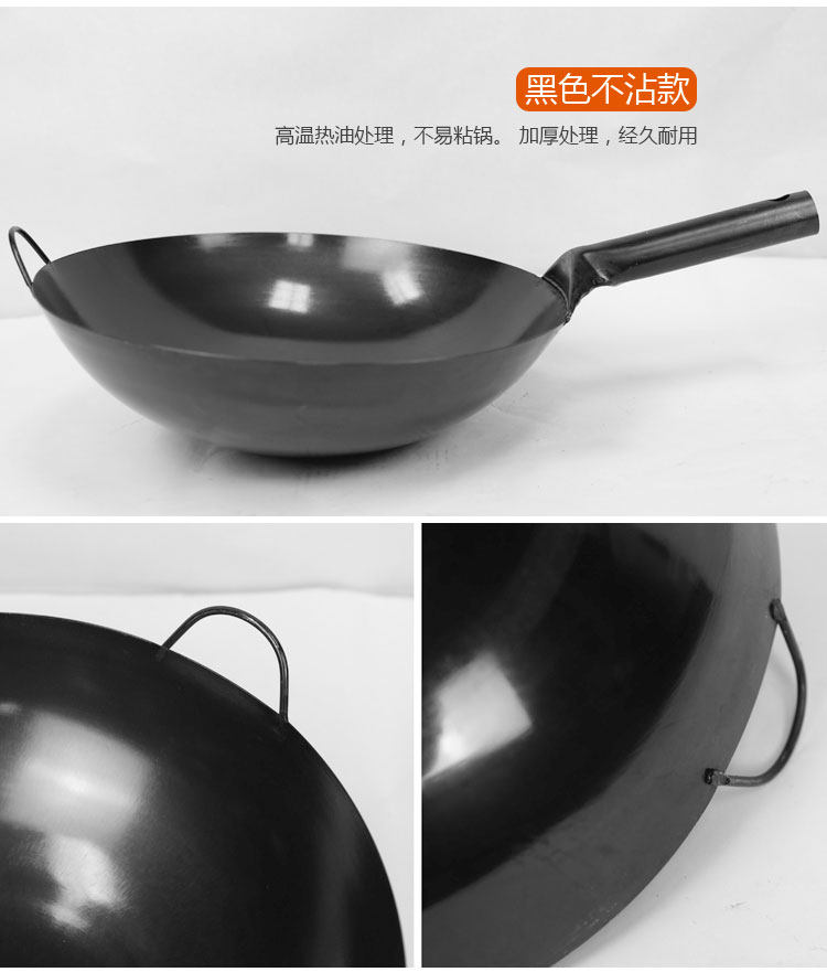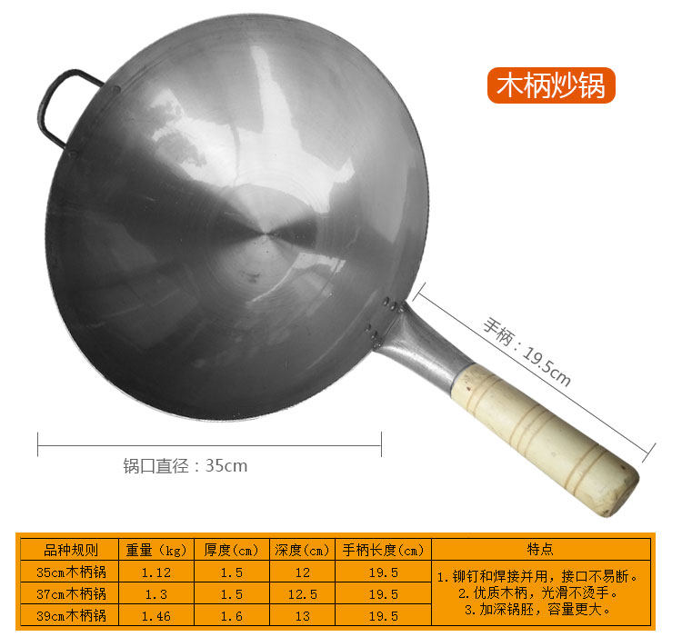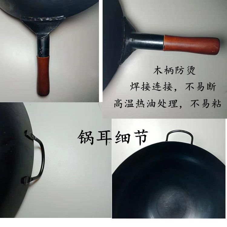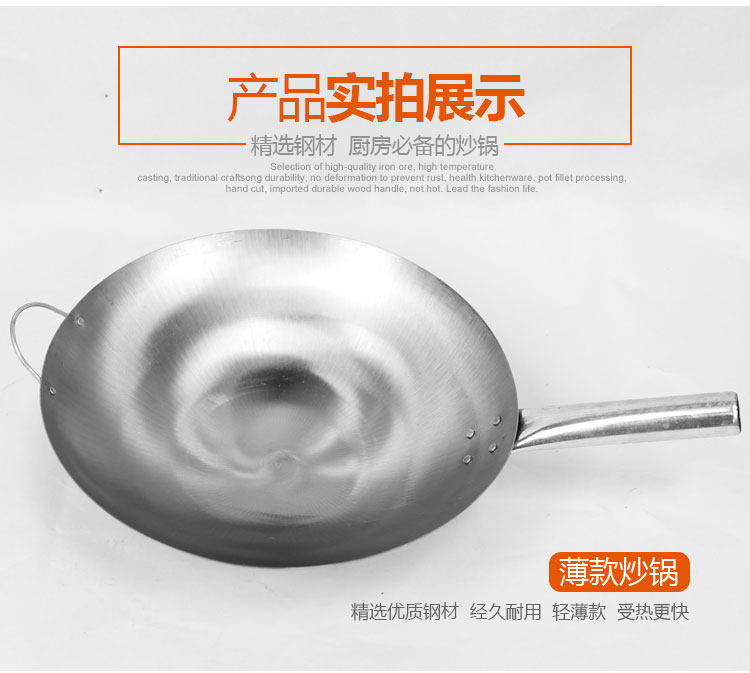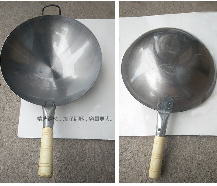 36 38 40 45cm鋼皮鍋 飯店快餐店炒粉炒蛋炒飯鍋 鋼皮鍋 鐵皮鍋 木耙防燙