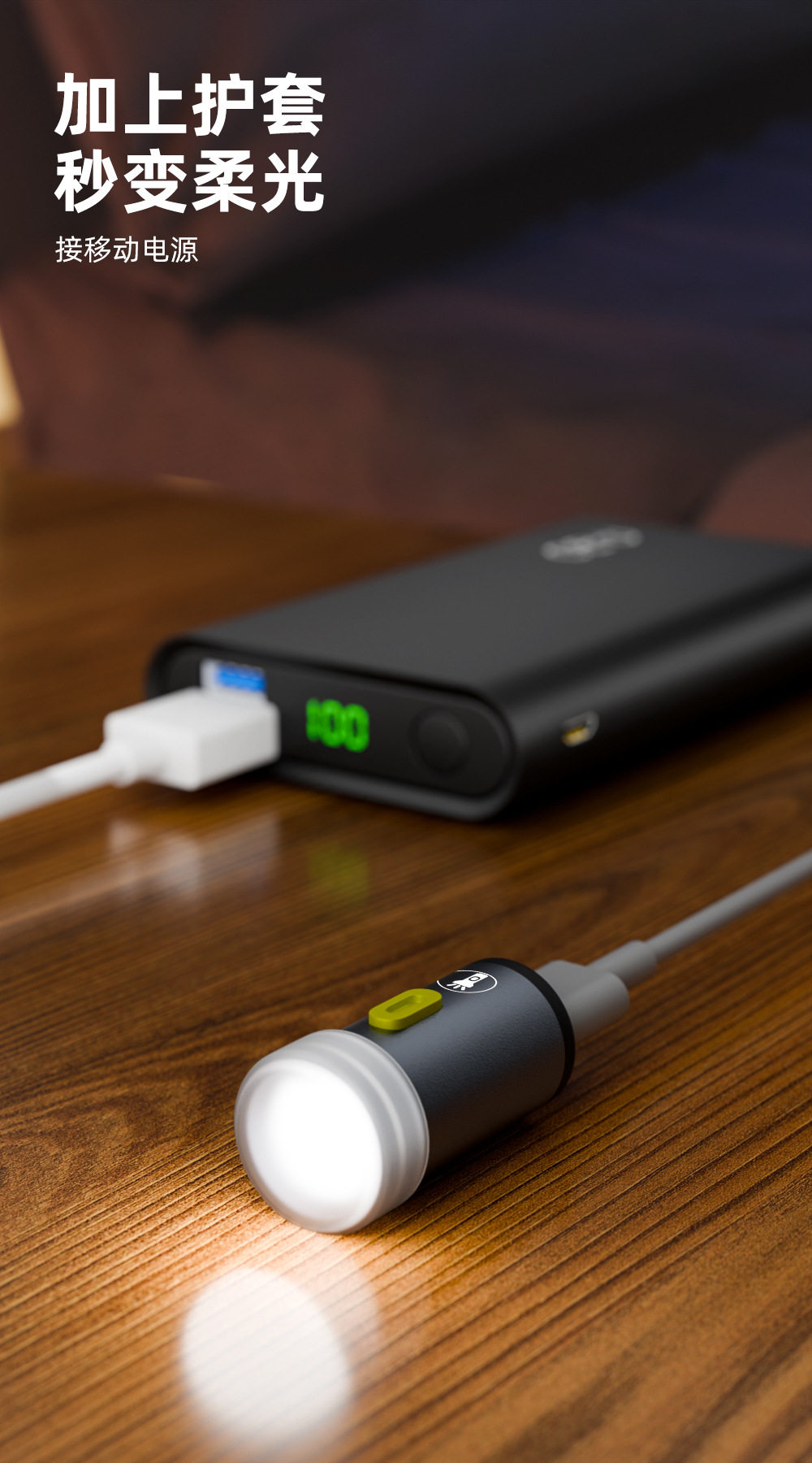 溫馨提示:無電源設計,5V小燈具,配掛繩,可以接充電寶、手機、充電器、筆記本等設備取電。