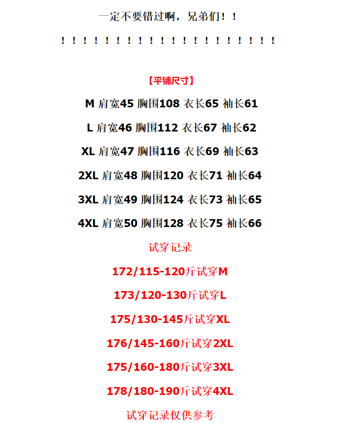 * 客服推薦尺碼僅供買家參考,具體購買尺碼由買家自己決定。