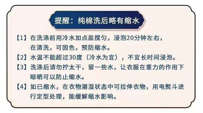 本產品采用優質純棉加工而成,適合廣大男性,青年,中年男士都可以穿,由于燈光拍攝原因,有的顏色偏深或偏淺一點請消費者諒解。友情提示:純棉料子會有點縮水,穿過純棉的都知道,建議涼水手洗,晾曬時縱向拉伸幾下保持平整,這樣縮水率小。不清楚拍那個尺碼可以咨詢客服。純棉面料尤其是深色第一次洗會有浮色和掉色,(具體原因可自行百度)除非不是純棉或者含棉底。建議第一次洗前用涼水加點鹽侵泡半小時,不要在熱水 肥皂水 堿水中長時間侵泡,這樣基本不怎么掉色。購買人比較多我就不挨個發消息提醒了見諒。注意:【加大碼是老式松緊帶皮筋腰圍,非獨立包裝,介意者慎拍。】