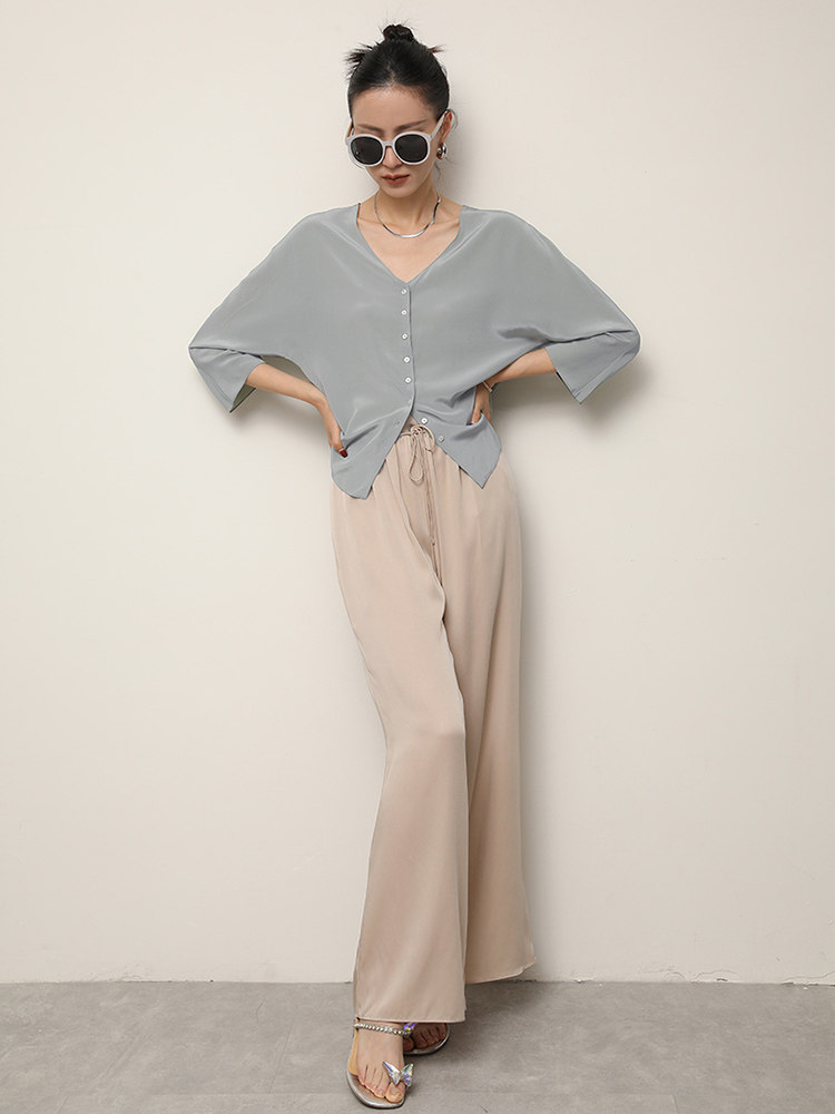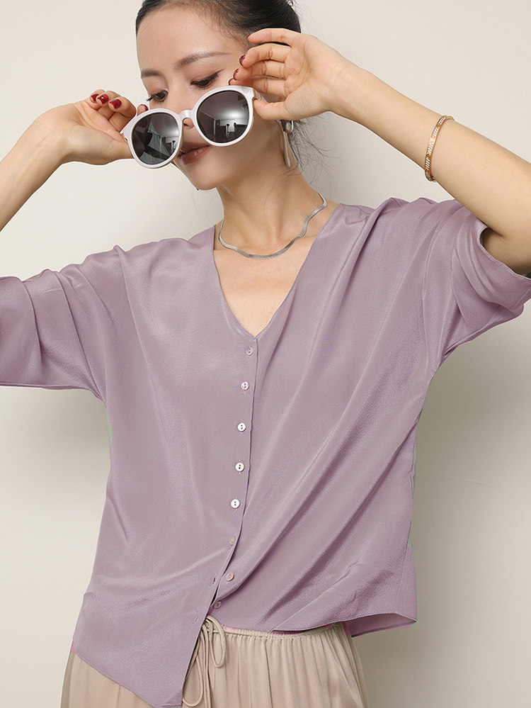 七分袖長利落干練,真絲雙縐面料軟糯有筋骨感