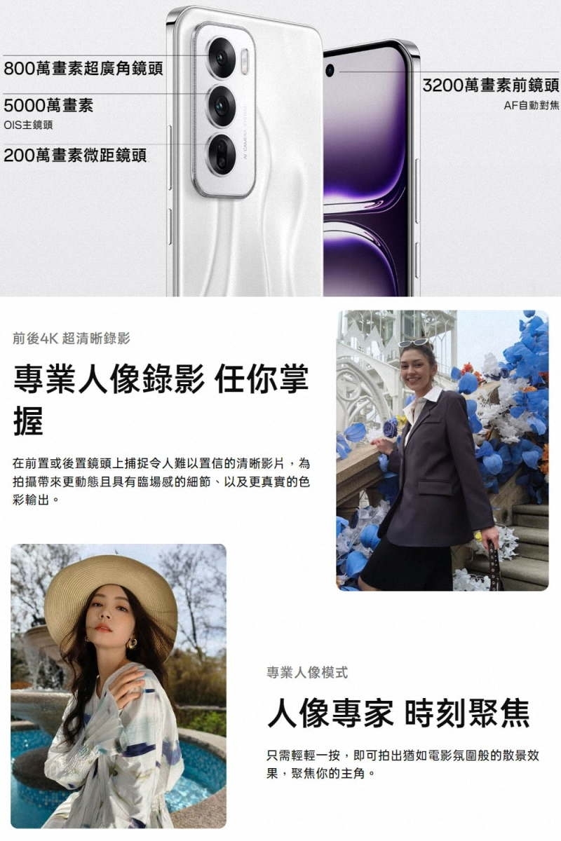 ◎ 後置 5,000 萬畫素主鏡頭 + 800 萬畫素超廣角鏡頭+ 200 萬畫素微距鏡頭