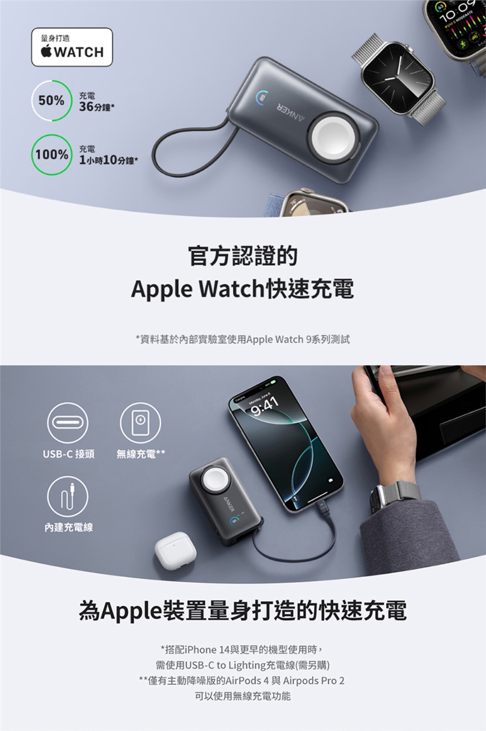 ■ 為Apple Watch量身打造,可快速充電