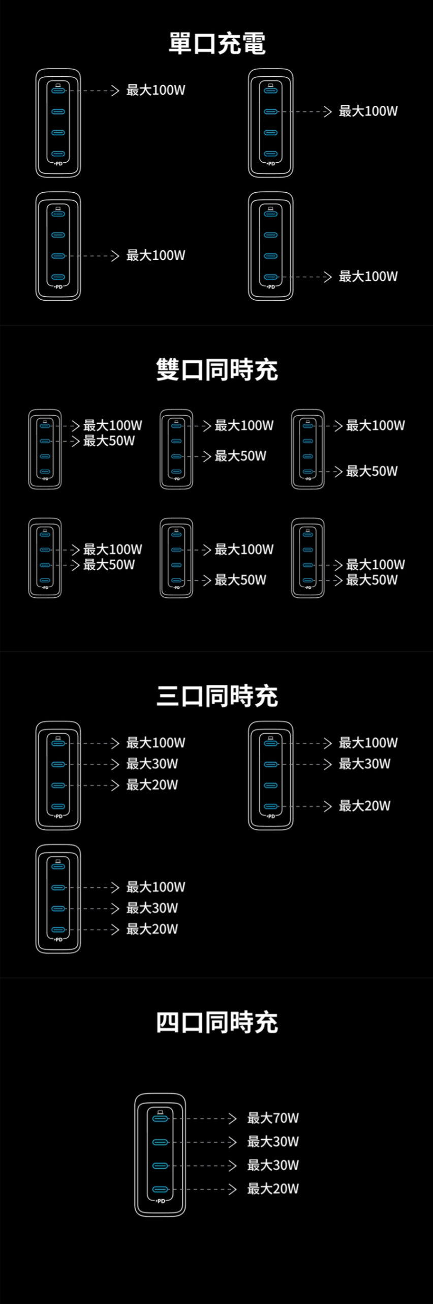 ■ 支援多台USB-C設備同時快充
