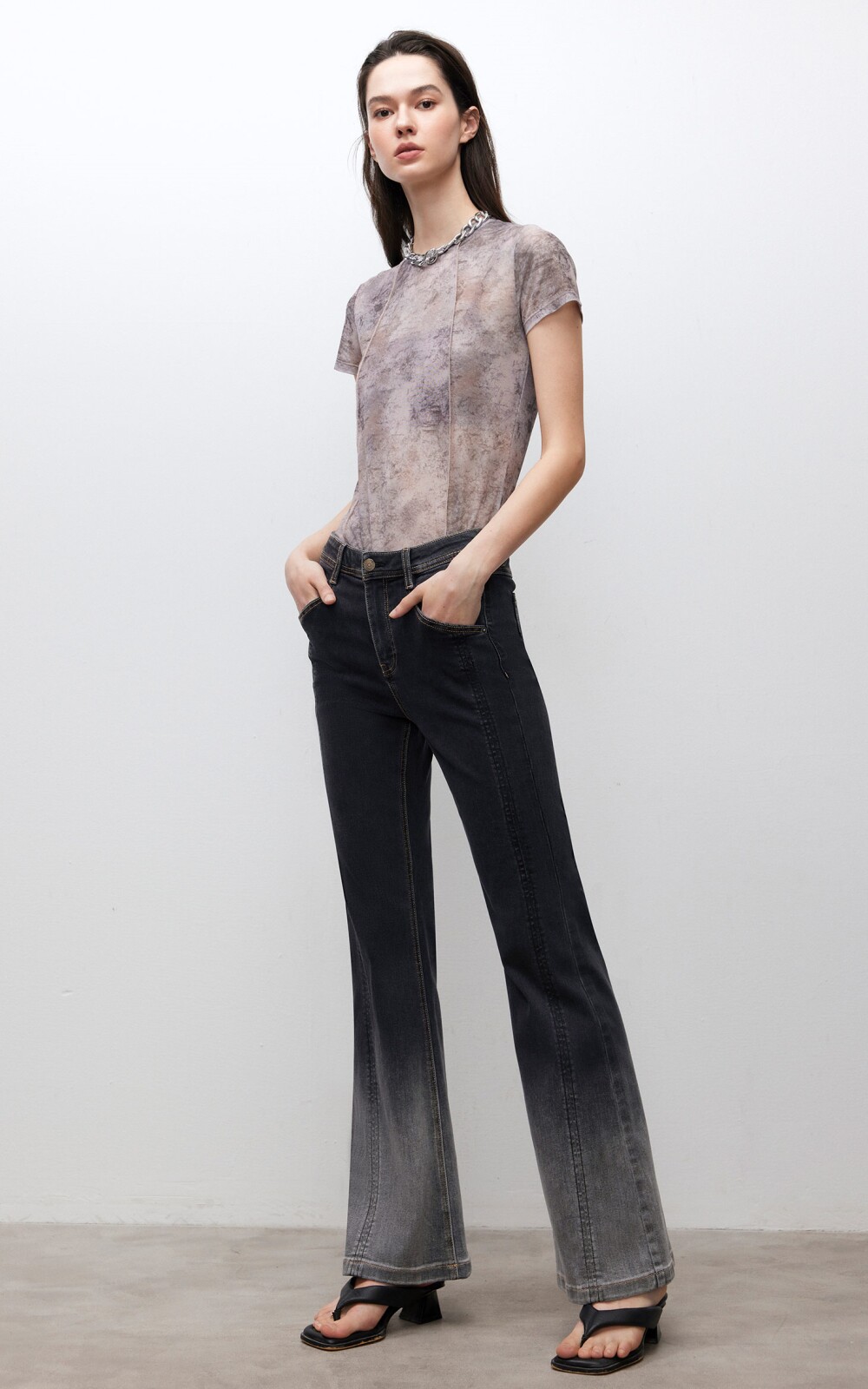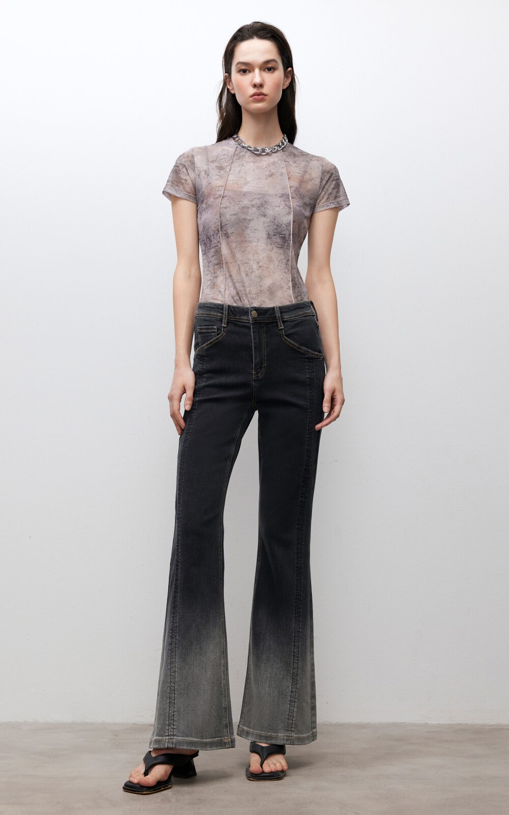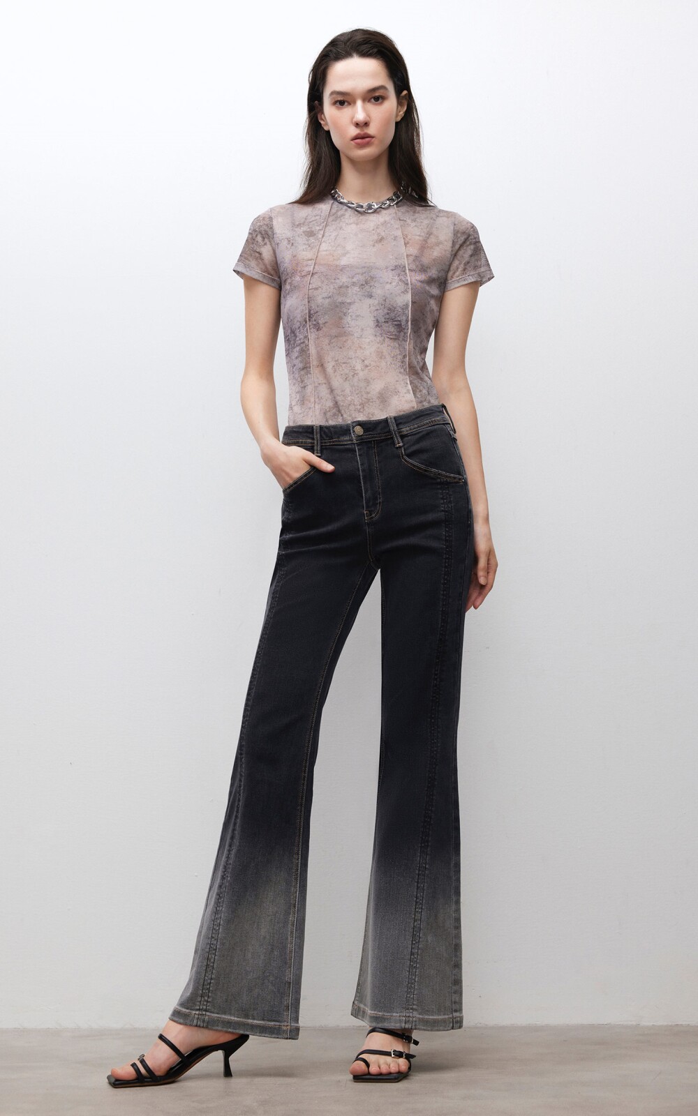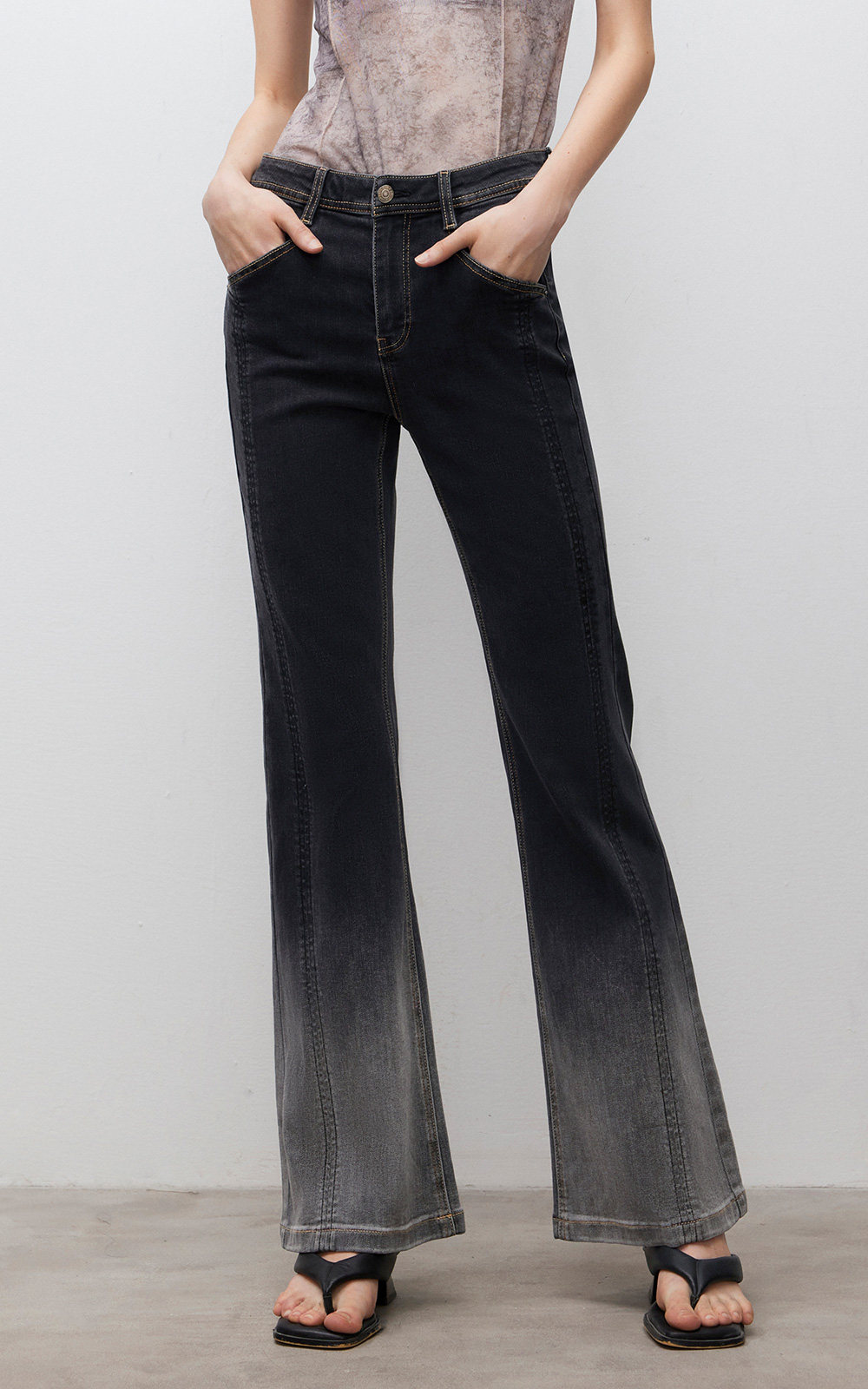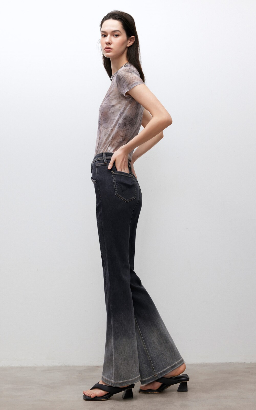 做舊復古感微喇牛仔褲
