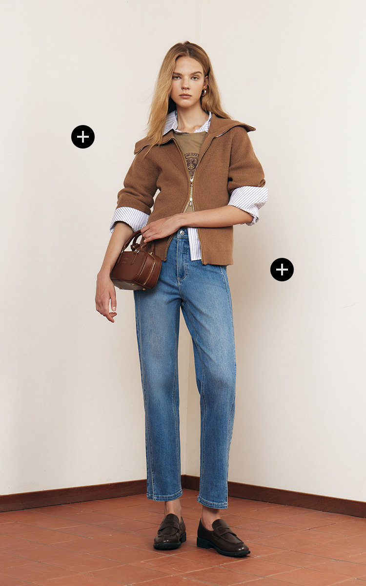 *模特佩戴配飾均為搭配不做銷售用途,商品顏色請以實物為準,可參考平鋪顏色,牛仔因染色工藝洗滌的時候會褪色,請您注意和淺色衣服分開洗滌
