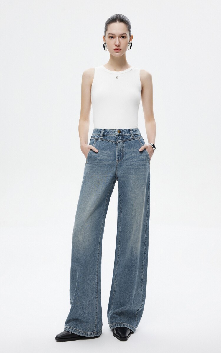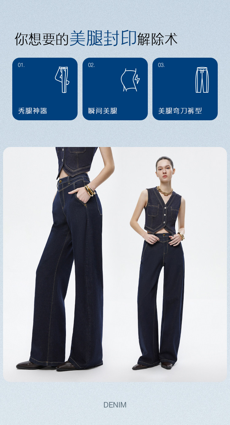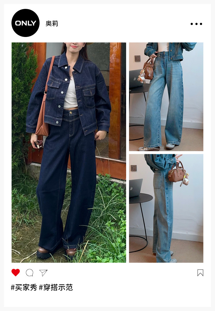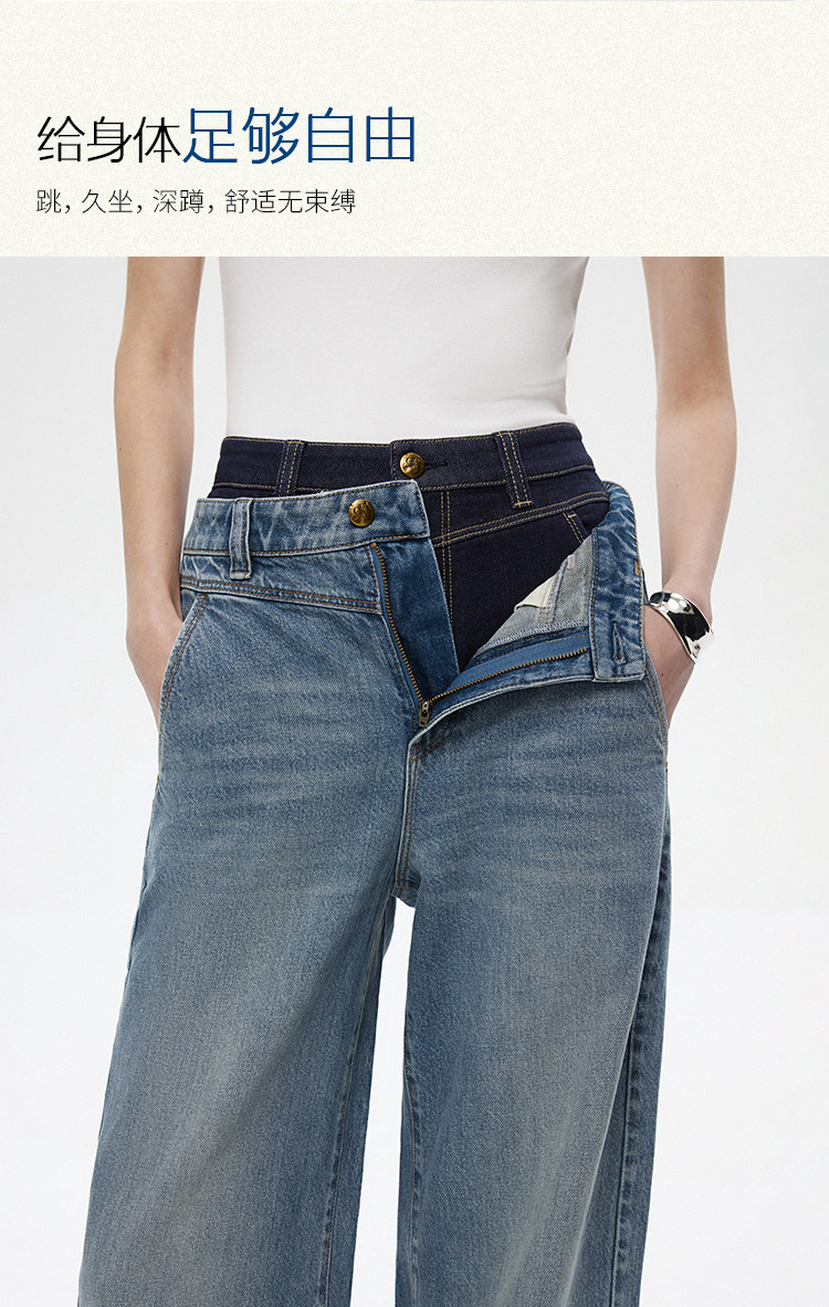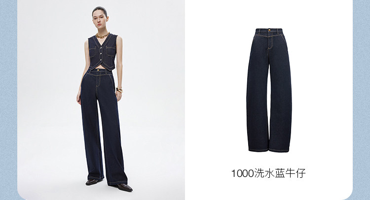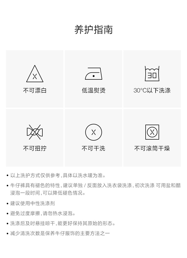 *模特佩戴配飾均為搭配不做銷售用途,商品顏色請以實物為準,可參考平鋪顏色牛仔因染色工藝洗滌的時候會褪色,請您注意和淺色衣服分開洗滌