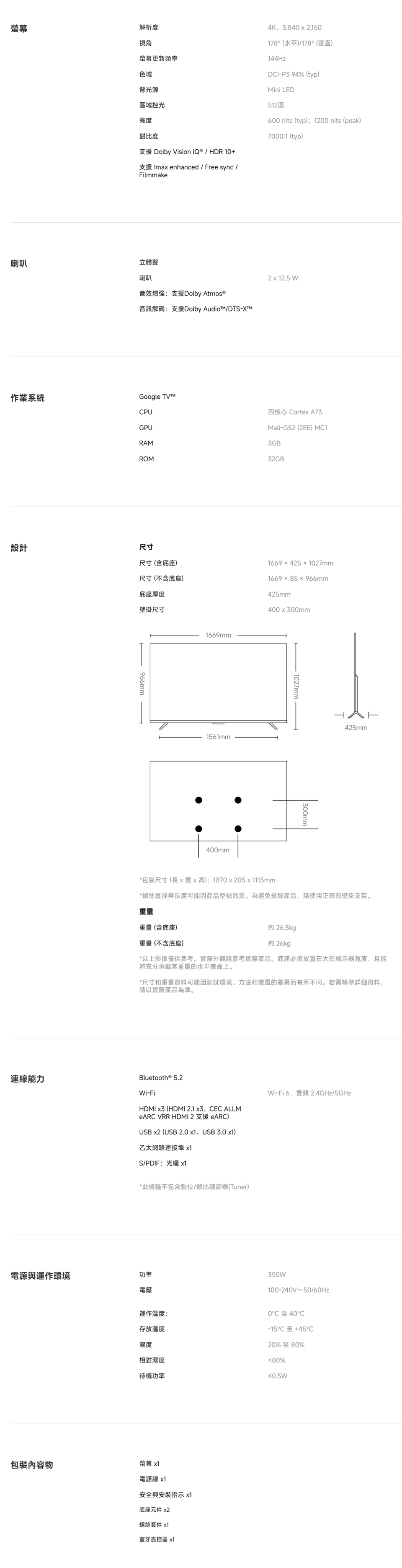 5.本公司僅支援標準安裝,另需要施工、壁掛等作業,請先備註,消費者可於當日決定是否安裝,費用參考小米官網收費。