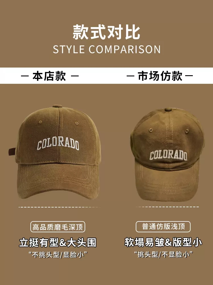 R字母是傳統硬頂款,是棉質的材質哦,不是磨毛的哦親親 colorado字母的是磨毛材質兩種材質供您選擇 注:co磨毛的常規碼尺碼比普通款也略微加大加深加寬一點哦,頭圍60以下co碼的買常規碼即可,R字母的常規碼就是正常大小