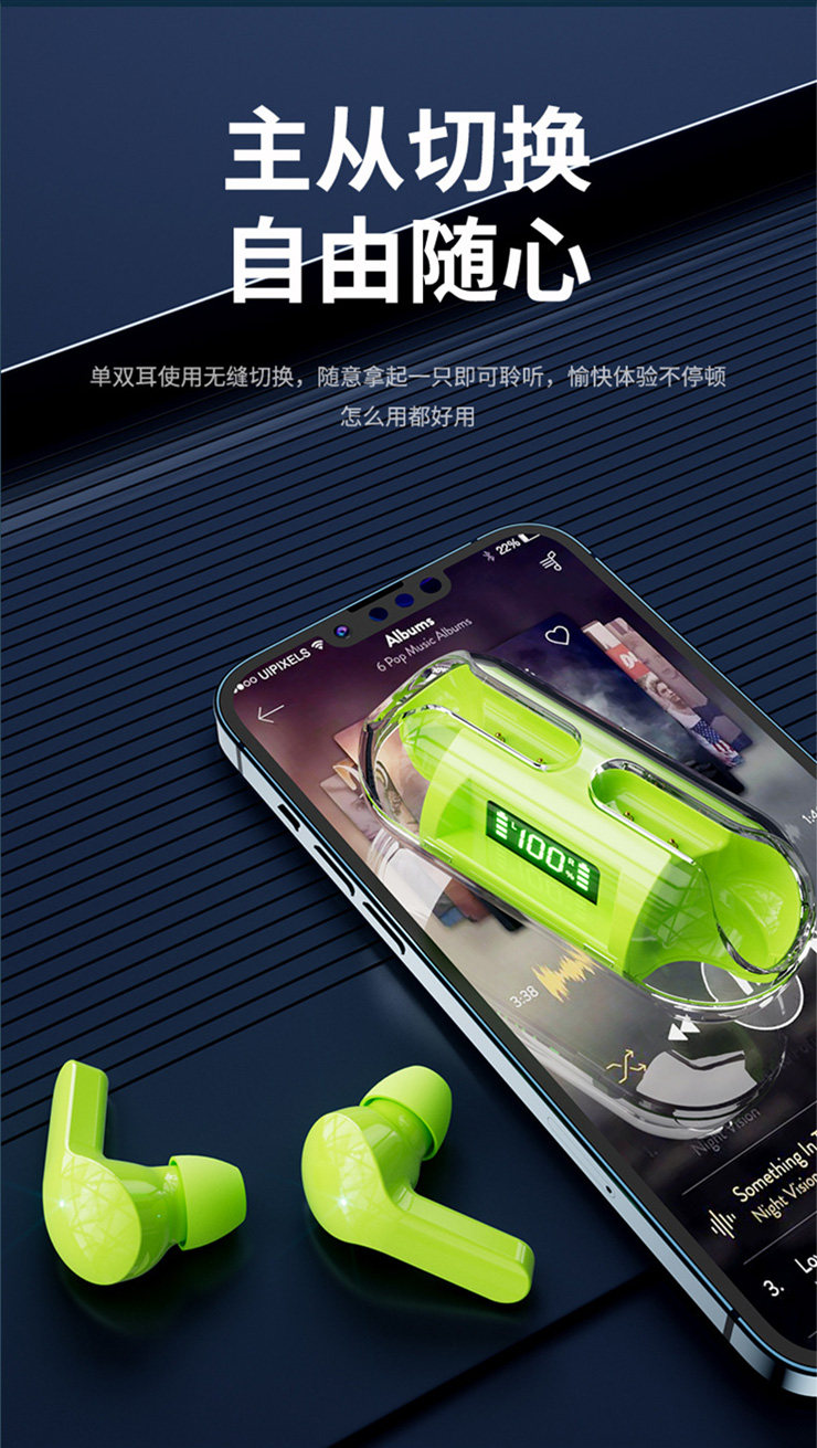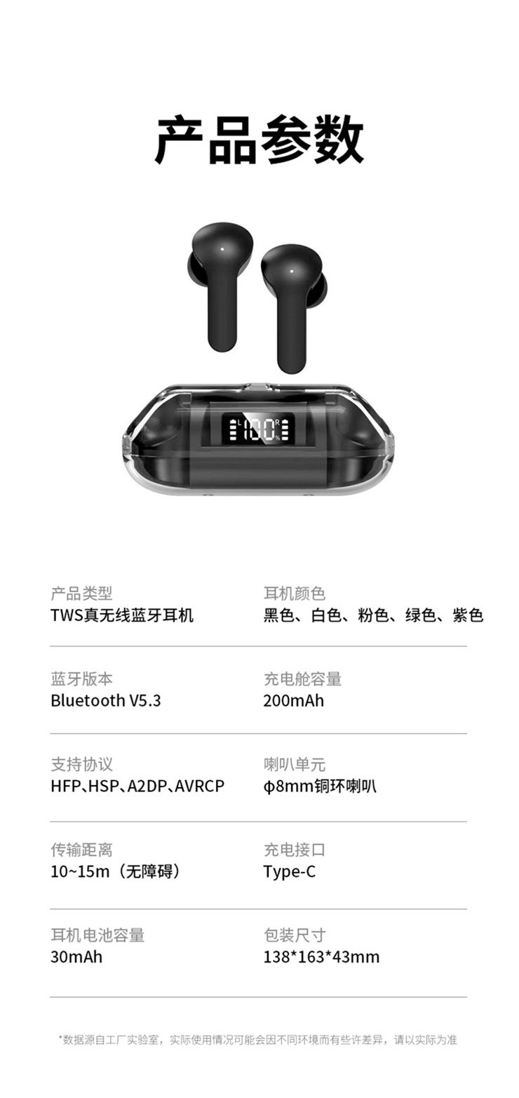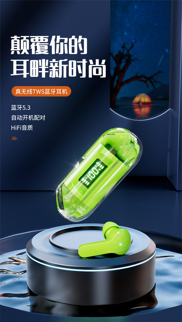 產品名稱:佰通T4智能數顯透明倉藍牙耳機