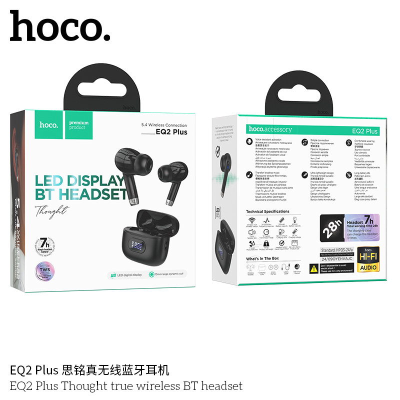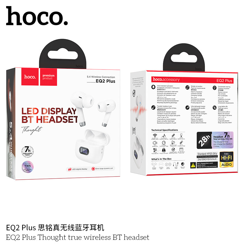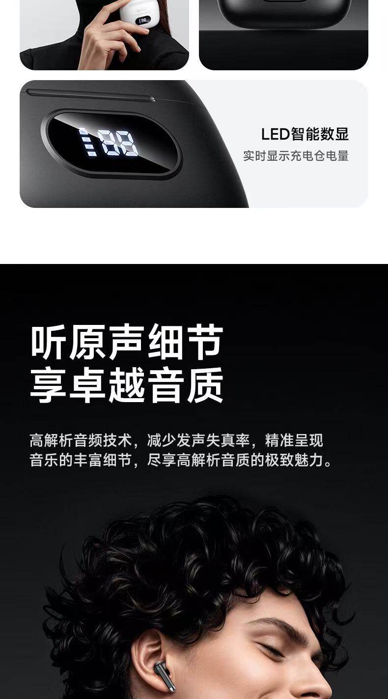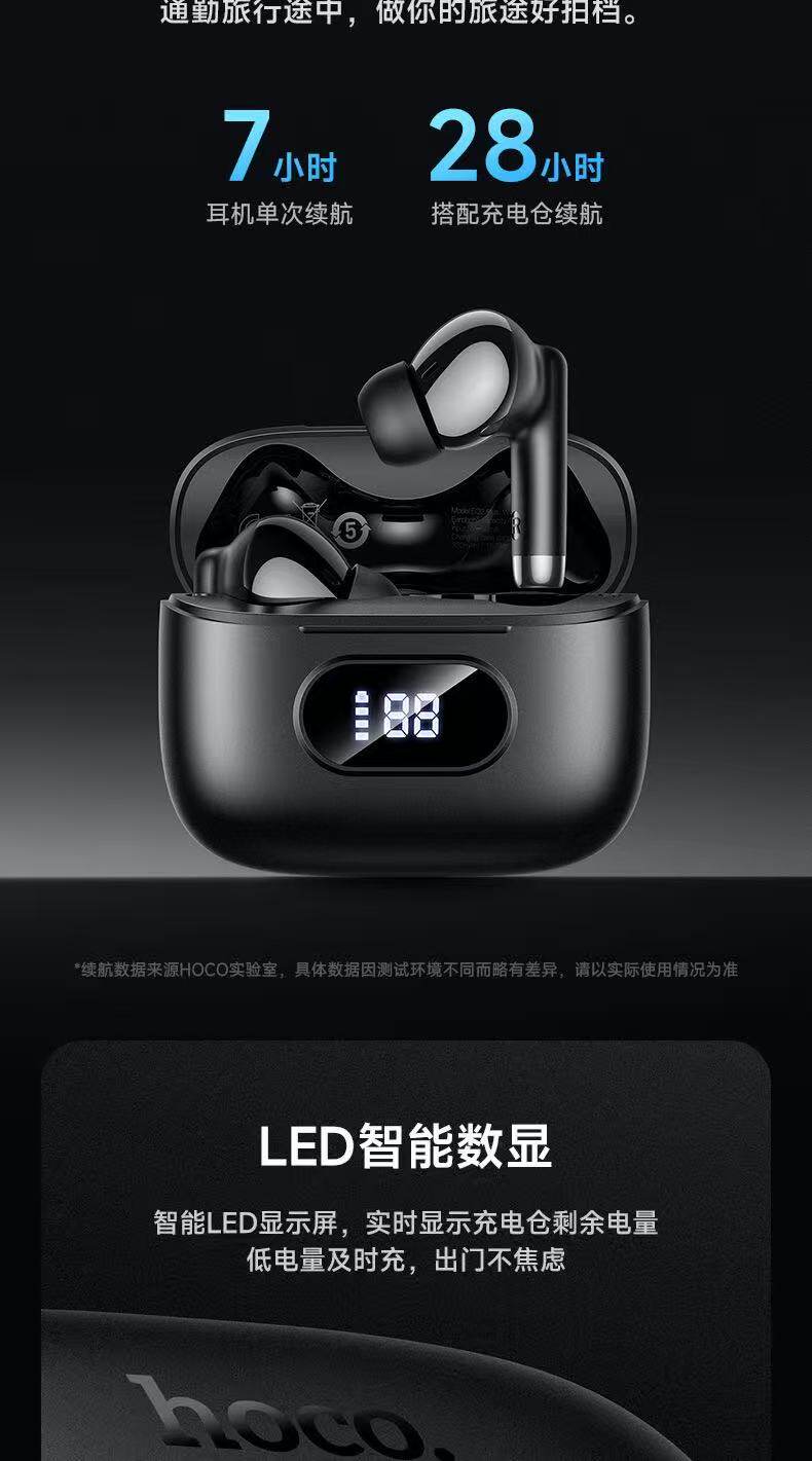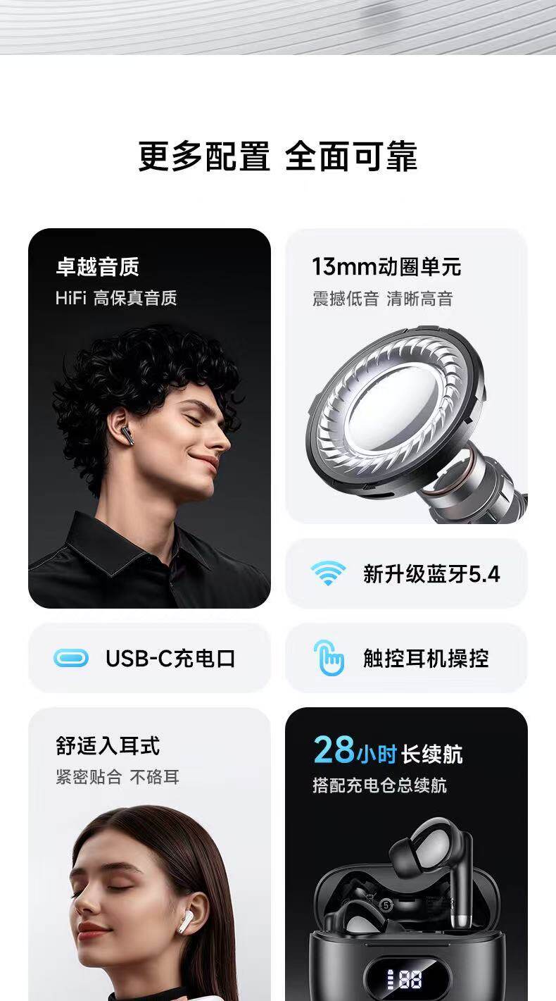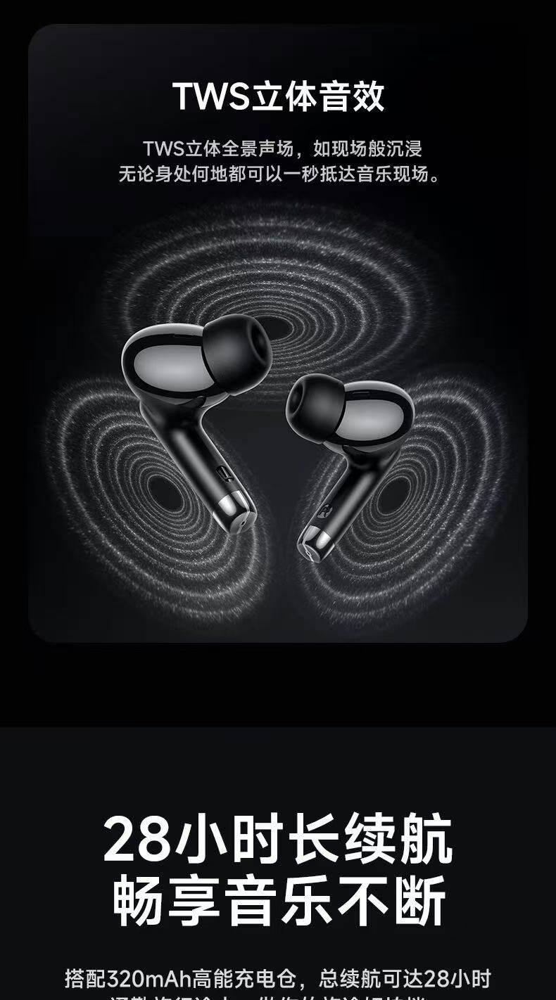 浩酷EQ2 Plus 思銘真無線藍牙耳機1,藍牙5.4;芯片:杰理AC6983D22,電池容量:充電倉320mAh;耳機40mAh3,使用時間:7小時;待機時間:180小時4,尺寸:58*49*25mm;總重:45.5g5,支持主從切換、召喚Siri、充電倉顯示電量